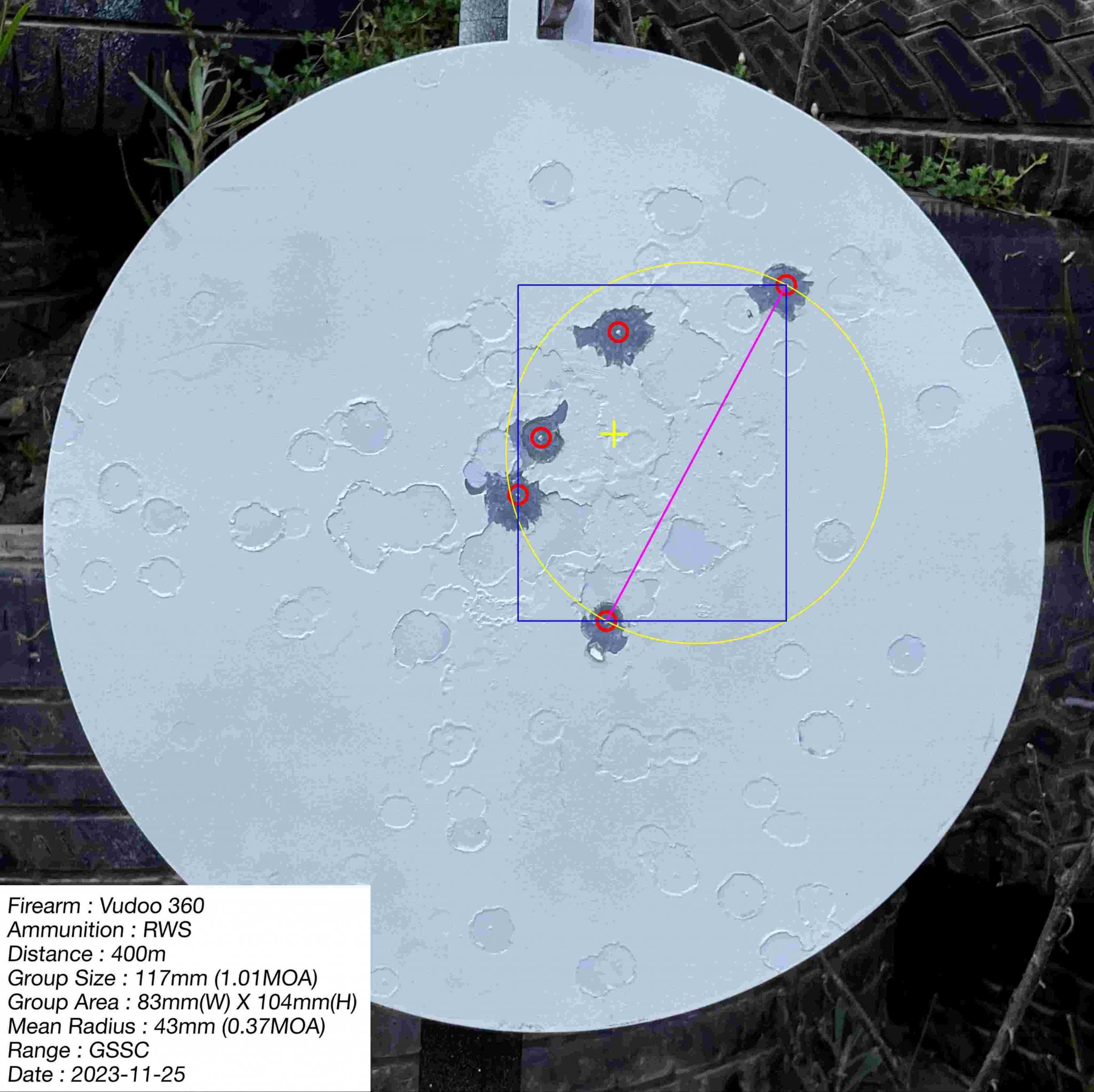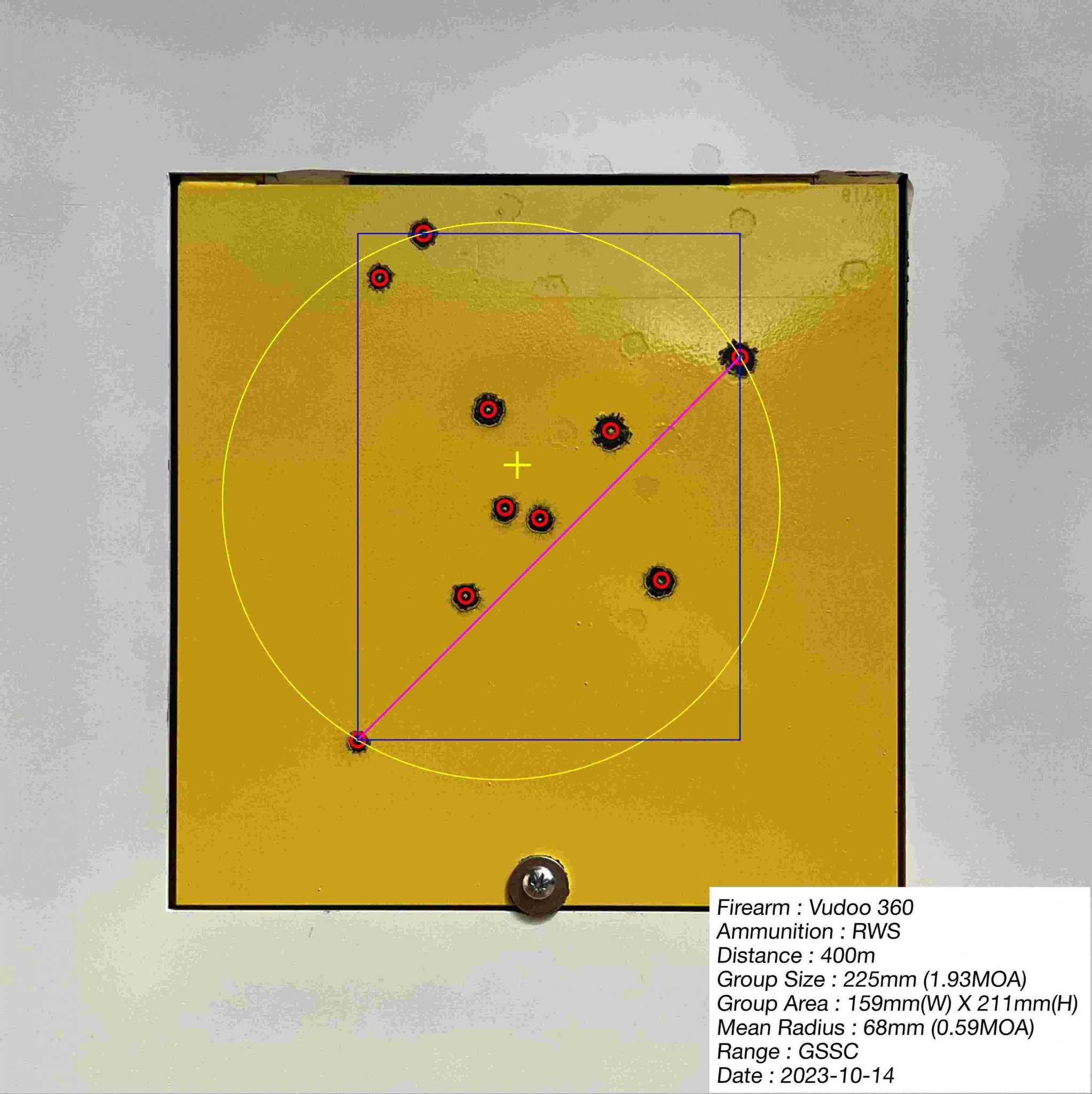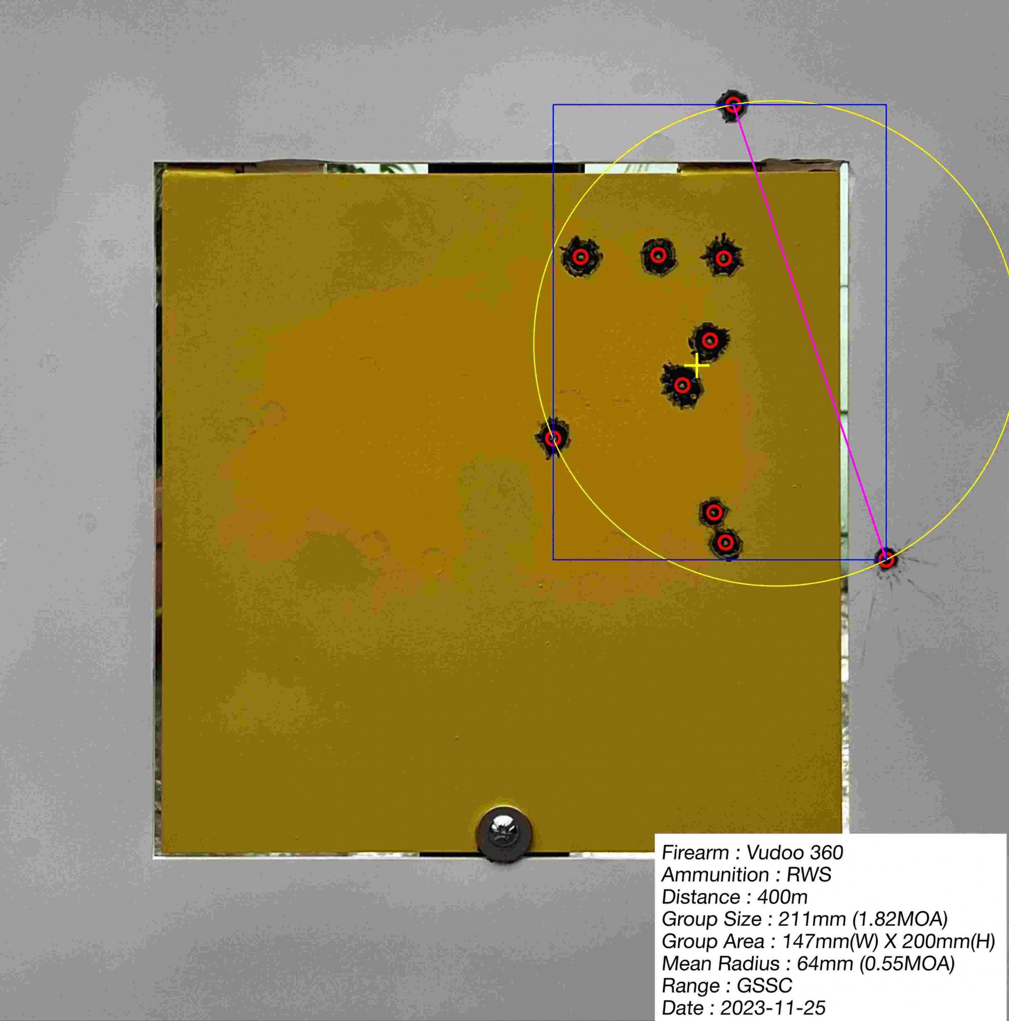 I normally shoot 10 shot groups at 400m (437y) for practice. My rifle constantly shoot 2.2 - 2.4 moa groups at this distance in fair conditions and was convinced it can shoot sub 2 moa in ideal conditions. This was my first attempt early (just after sunrise) Saturday morning in ideal conditions.