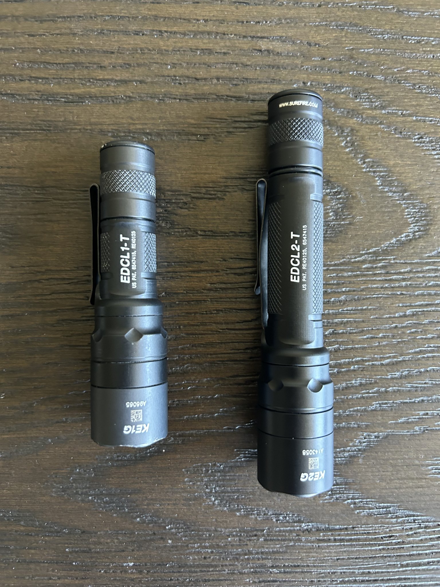 Two Surefires. One EDCL1-T and one EDCL2-T. The EDCL1-T has some signs of use and the EDCL2-T is like new.
