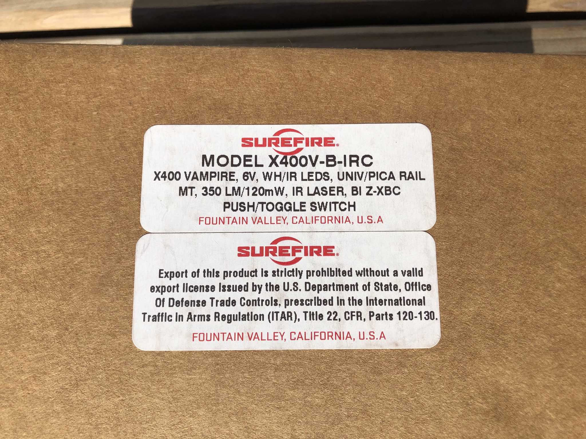 The SureFire X400V IRc is a highly versatile dual-spectrum handgun WeaponLight that also boasts an integral Class 1 infrared-laser sight for use with night vision devices (NVD). This groundbreaking X400 model—which also mounts to long guns with MIL-STD-1913 rails—features a white-light and an infrared LED in its innovative V-Series head that will meet virtually any mission requirement.
