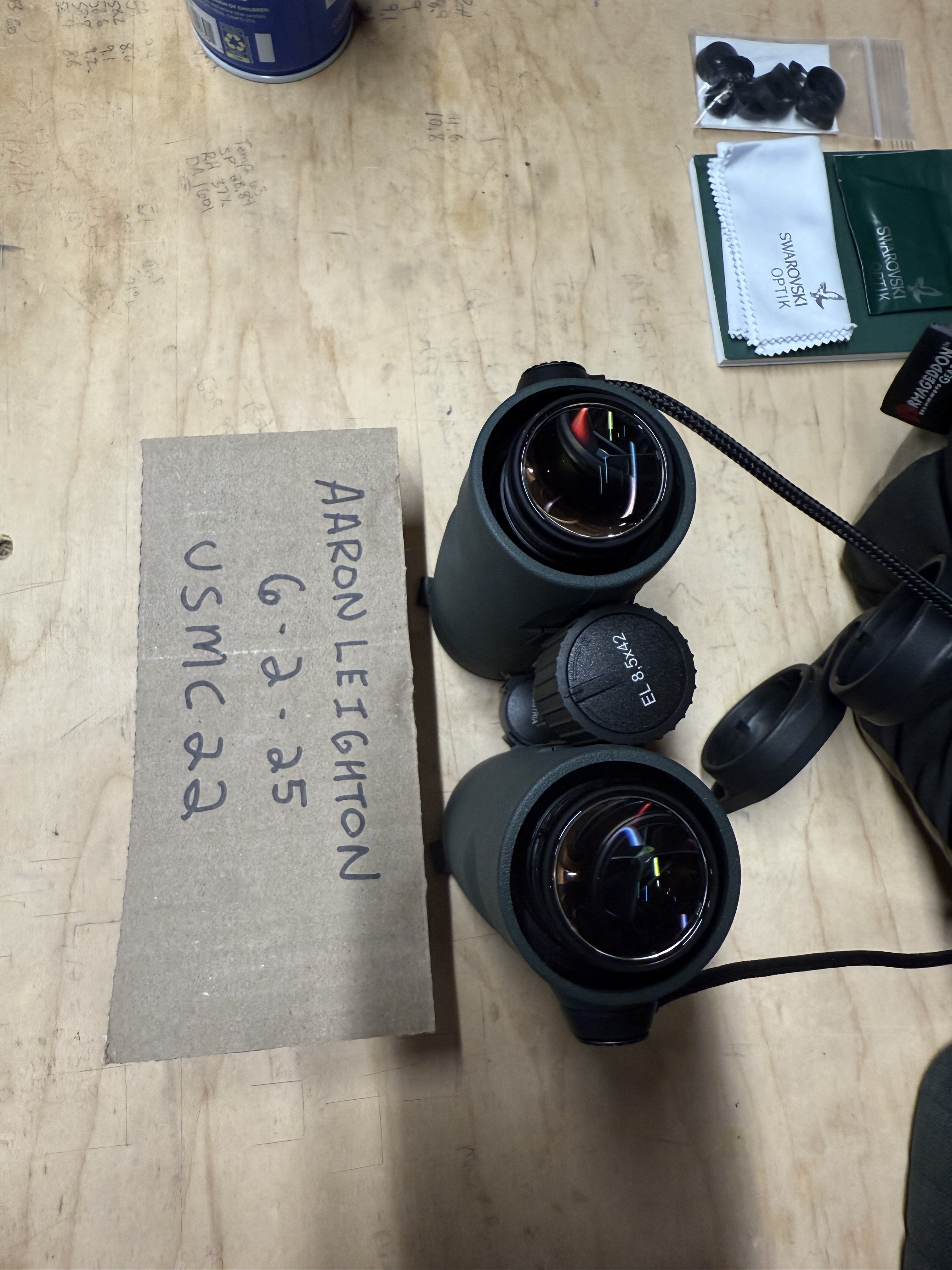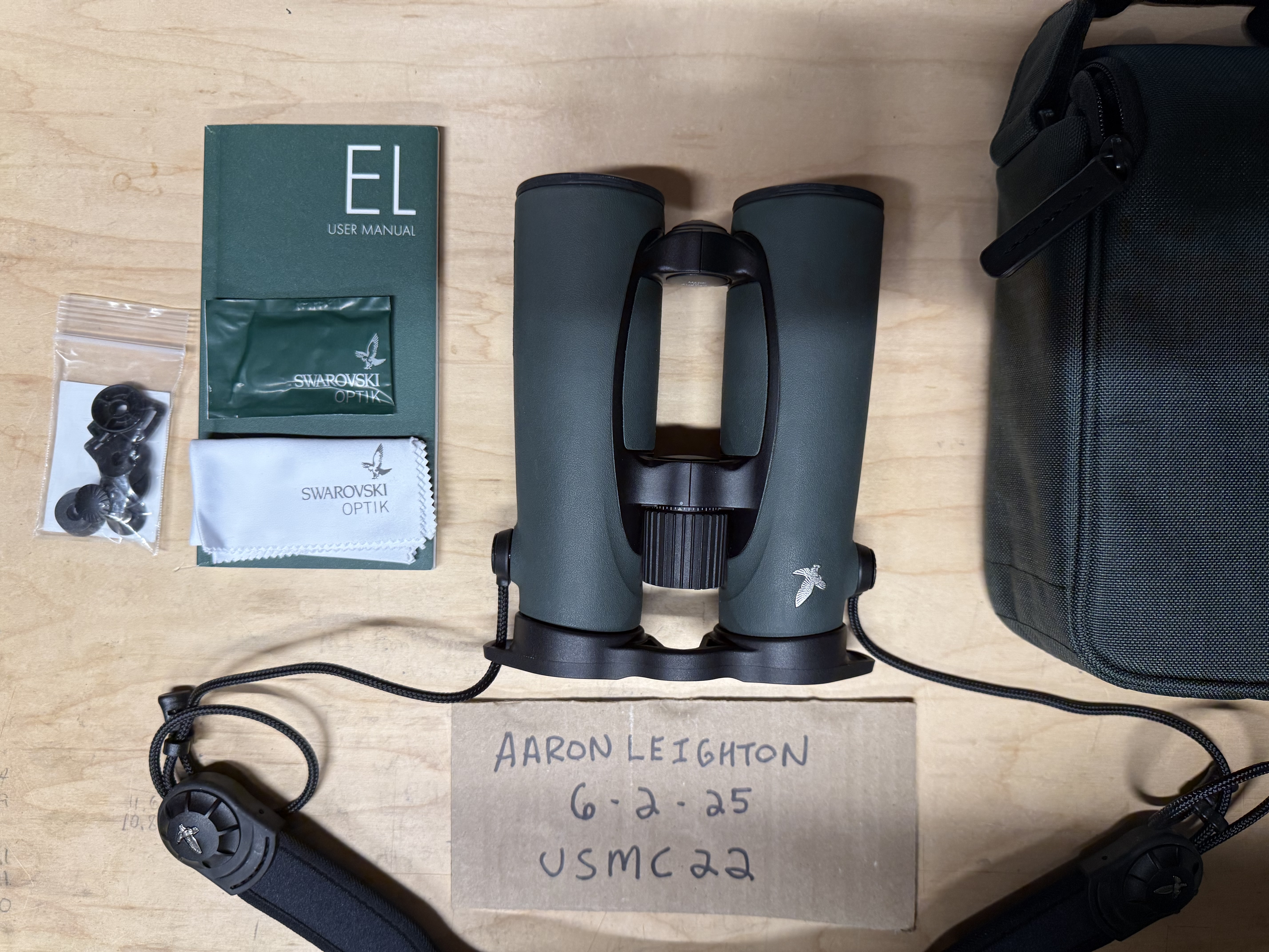This listing is for my Swarovski EL 8.5x42's that I purchased new from Europtic May of 2019. I am the original owner and have enjoyed these binoculars. I recently "upgraded" to Swarovski NL Pure 8x32's only because I wanted to try a more compact binocular.