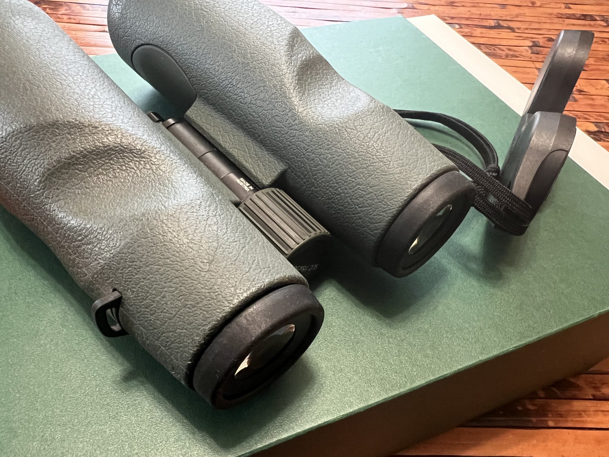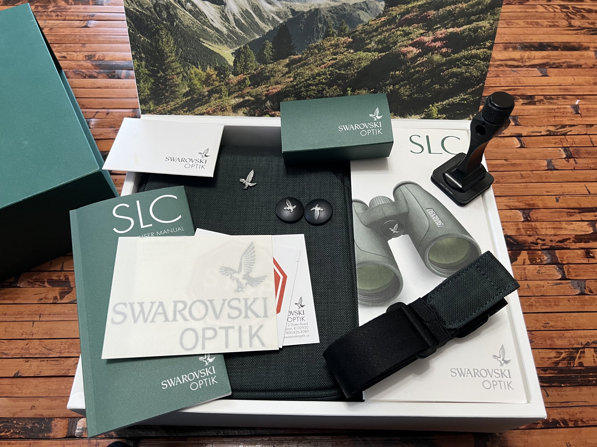 Includes lens caps and all inserts and accessories as from the factory, as well as an Outdoorsman bino adapter with Gray Ops arca plate.