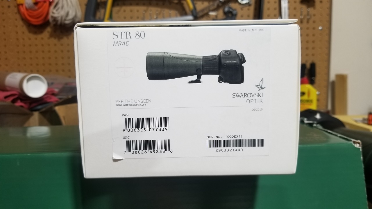 Pm sentSwarovski STR 80 spotting scope with 25-50x Wide eye piece in MRAD. Will come with RRS plate for instant mounting and Phone Skope optic adapter so you can take pictures. Priced to sell. $3300 (you cover insurance if you want it)