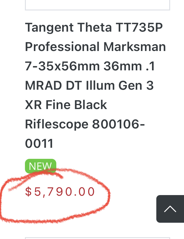 eh i wasn't going to get a Tremor reticle anyways lol. I'm hoping the TT735P is knock your socks off good cause I will need either that or a 6-36 high performance PMII to top an MRAD.If you have VIP (mil/le/PRS) pricing turned on (or use a vendor here) the pricing is much, much cheaper....![]()