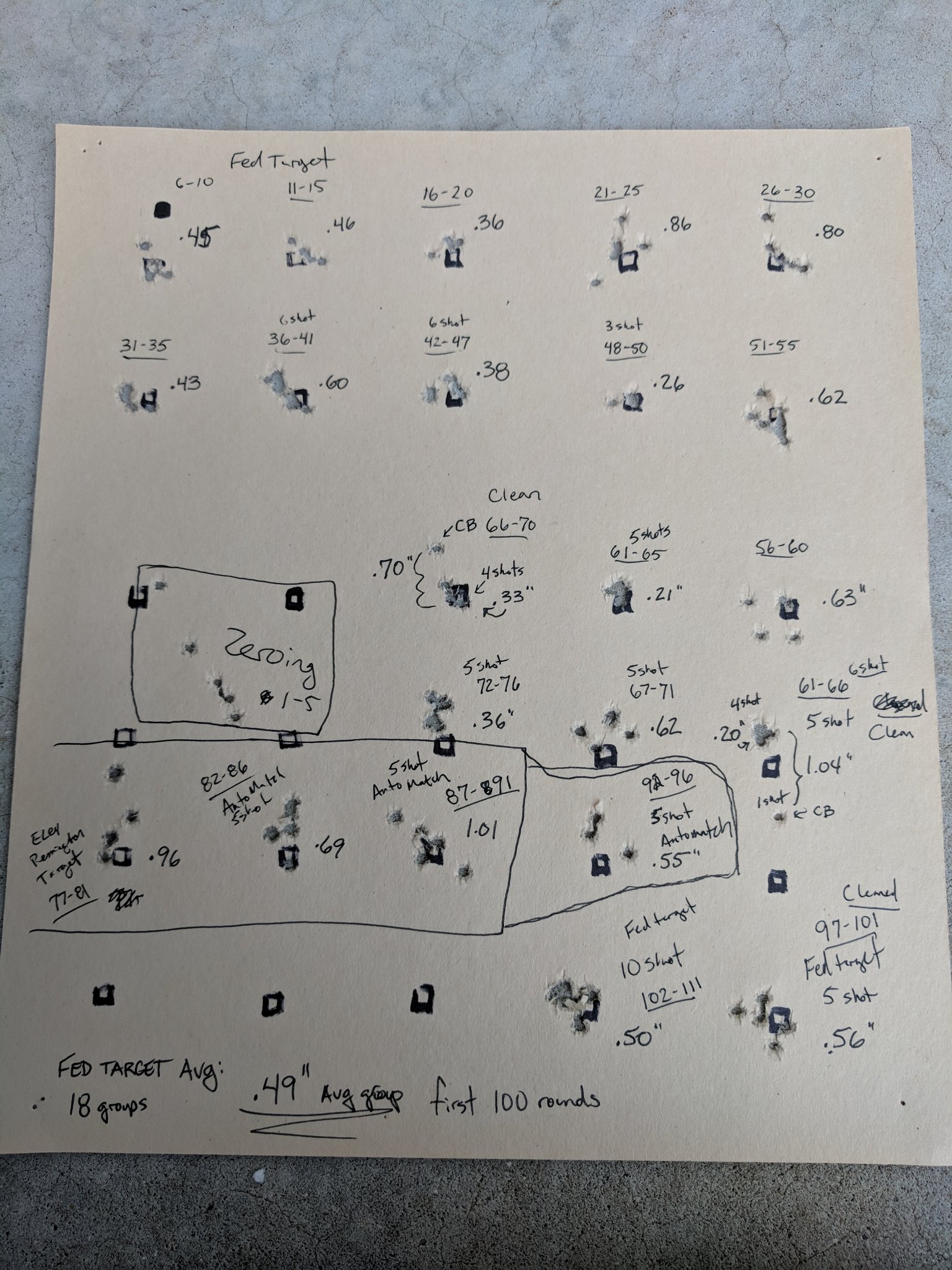 - Fed AutoMatch .66" best/.72" avg/ .94" 10 shot