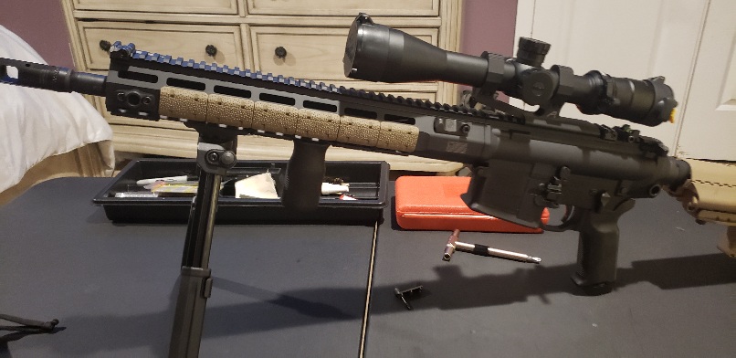 So far I've shot 460rds of mixed match and military 7.62x51 & .308 through my SIG716I TREAD. It has been accurate and reliable. I lightened up the trigger with a JP Enhanced Ignition Reliability Spring kit which gave me a clean crisp 4.5lb pull. I also added a SureFire ProComp 7.62 Muzzle Brake and VLTOR EMOD stock. I went with Magpul grips and covers and chose the Pro Offset Flip-ups for BUIS. On top sits a Nikon M-Tactical 3-12x42SF MK1-MRAD scope in 30mm Aero Precision Ultralight SPR mount.
