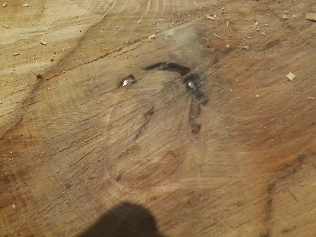 My guess was a birdhouse nailed where that branch was, but that's just a wild assed guess. It was throwing chips, then saw speed went up and fine saw dust... It fucked the chain pretty bad. I sharpened it, but didn't get all the way through the bad spots. Cuts decent now, but not like it was.