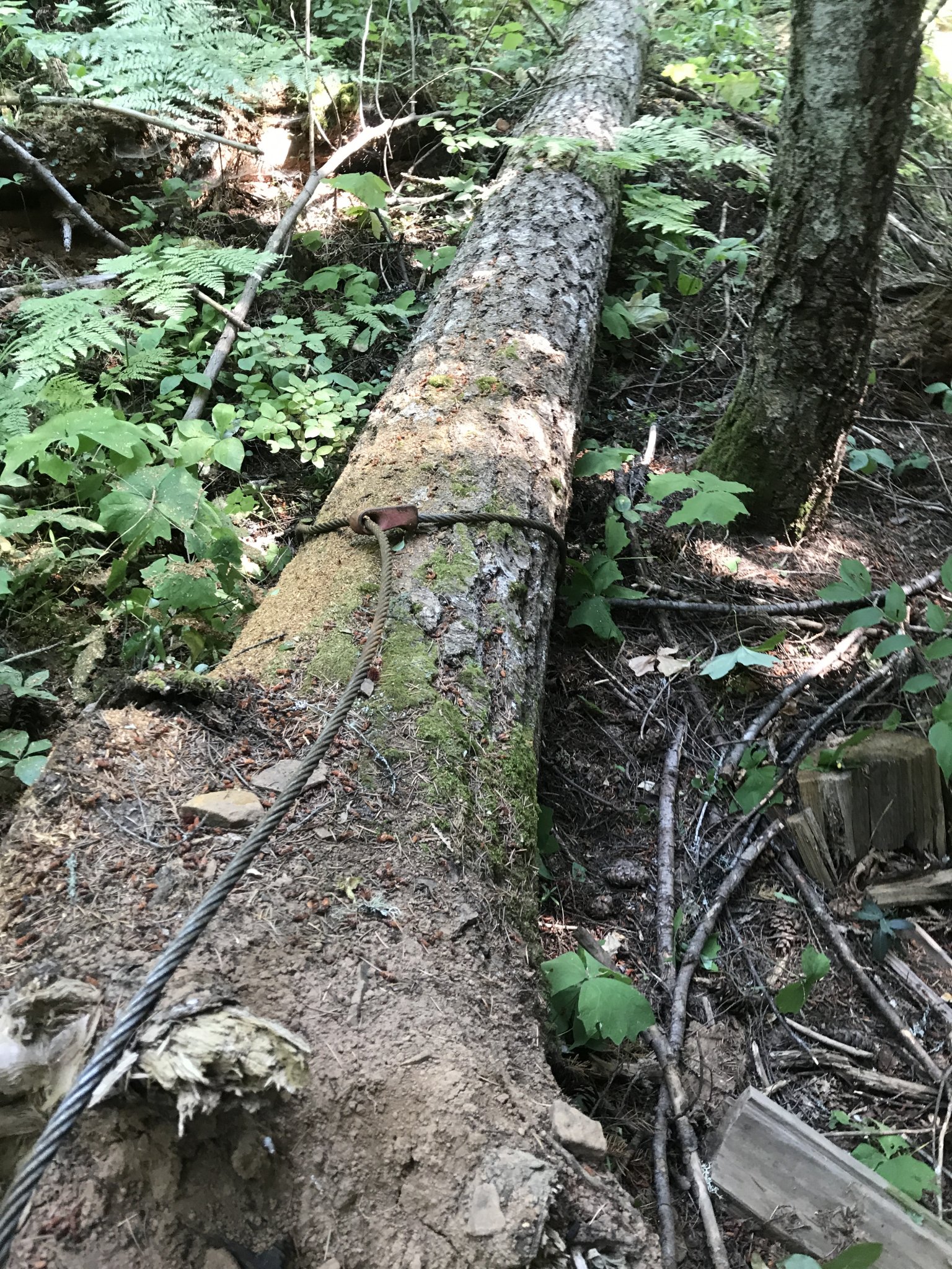 The cable is stiff enough to push under a log, poke a stick under it to open it up if needed. It won't let me unload a vid so here are some photos.