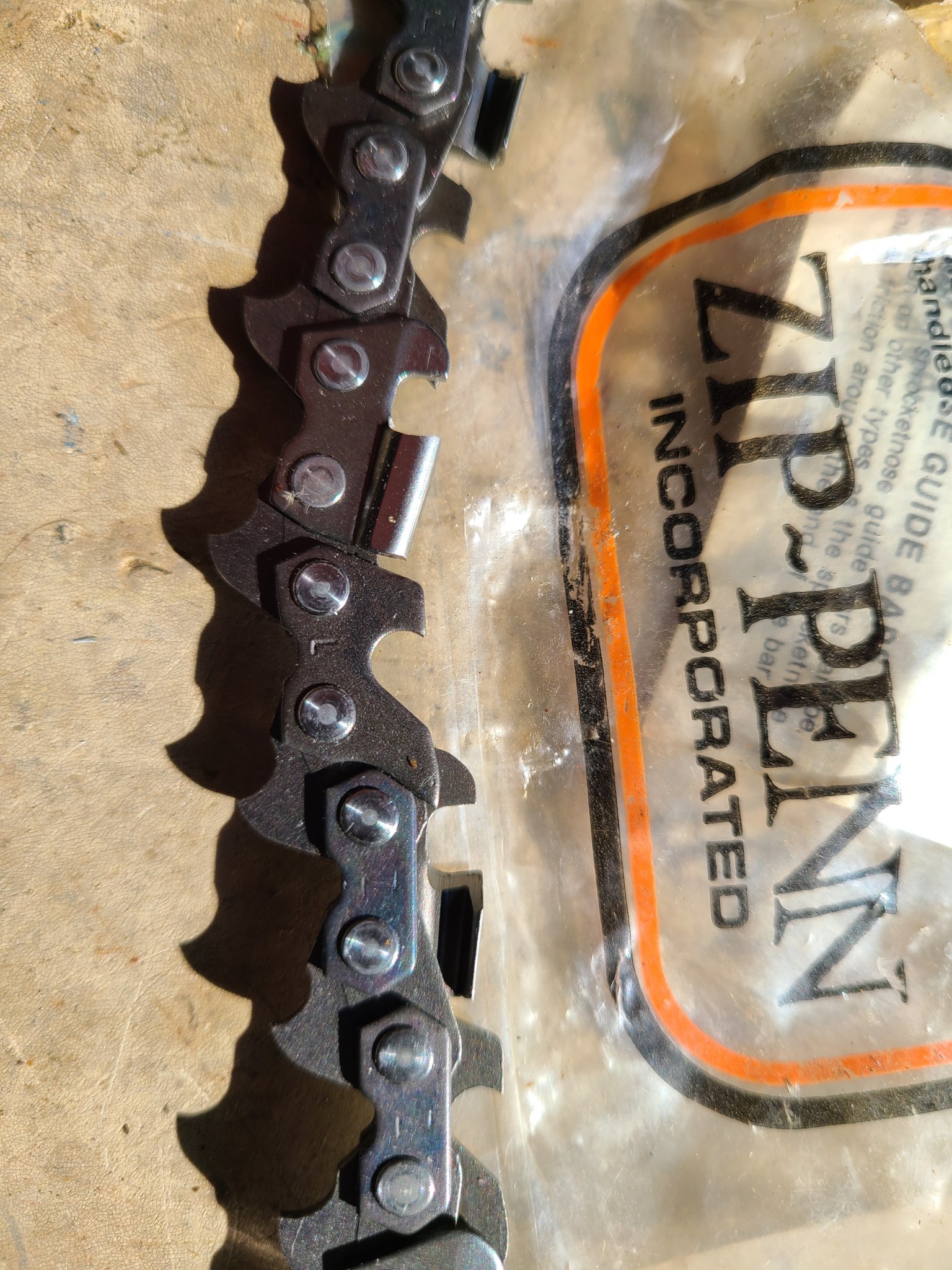 Looks like green link/safe chain/anti-kick back. If I’m right, throw it in the trash. You can’t plunge cut with it, it is less efficient cutting, etc...OK kiddies found some new old chainsaw blades in the barn.