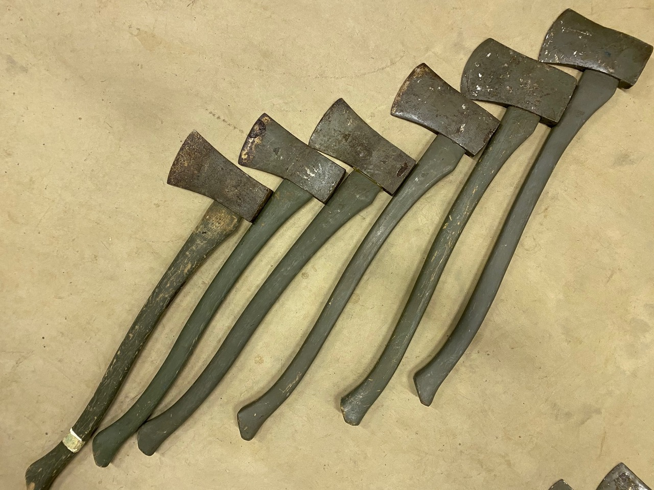 Some of the complete axes are going to need the handle rehung as they will be loose from long dry storage. If this is the case I will so note in the description. Re-hanging them is easy and takes about 15 minutes and 5 bucks if you know what you are doing. I can rehang them for you if you want but it will be as I have time and I will charge you a little for my time and the wedge.