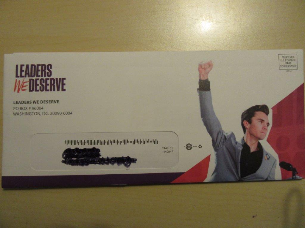 They still feel the Hogg is a positive image to pump some more Party-$$$ money into . They are this week canvasing mass mailing in search of support, and contributions with using his image, with usung catch phrase ..." Leaders We Deserve ".
