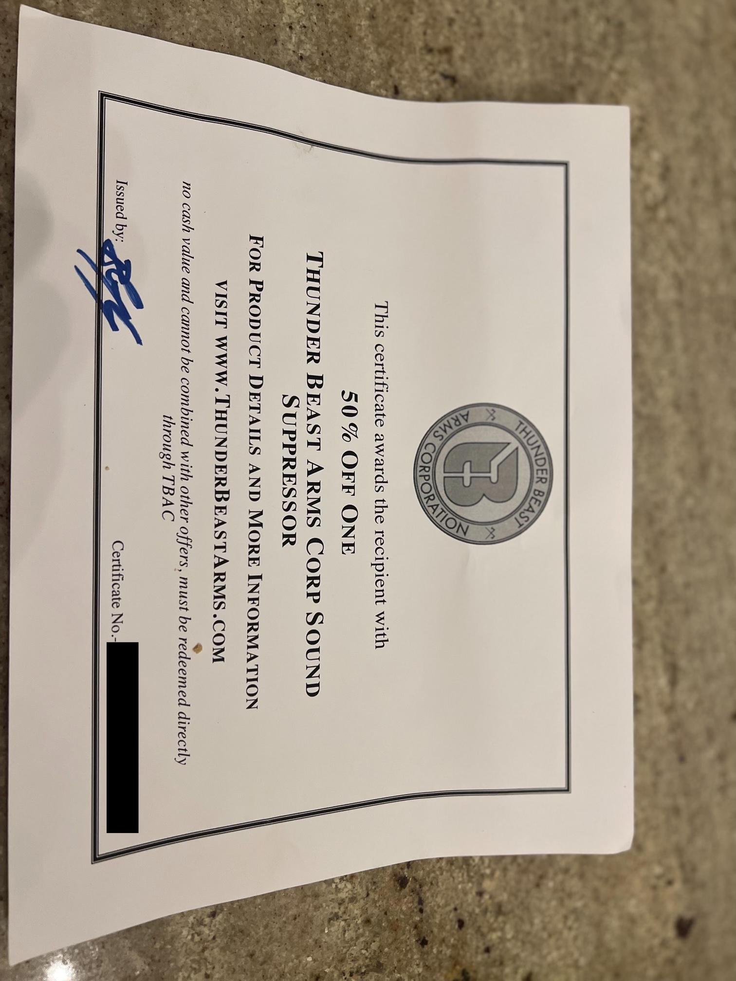 Thunderbeast 50% off cert. $400 and she’s yours.