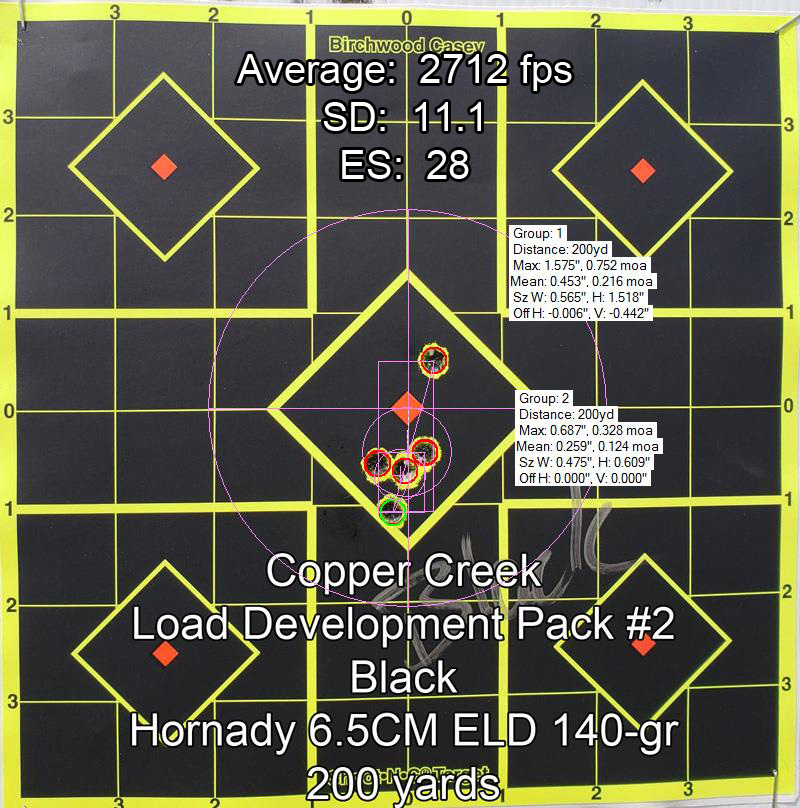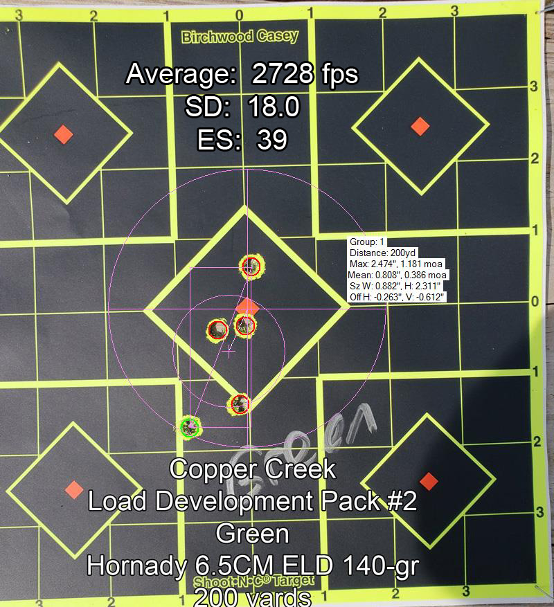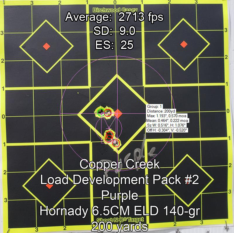 That all said... I sent Josh of Copper Creek an email asking him if I chose the wrong powder load. He said, "no." He stood by the recommendation to pick the smallest overall group size (rather than the smallest vertical dispersion).