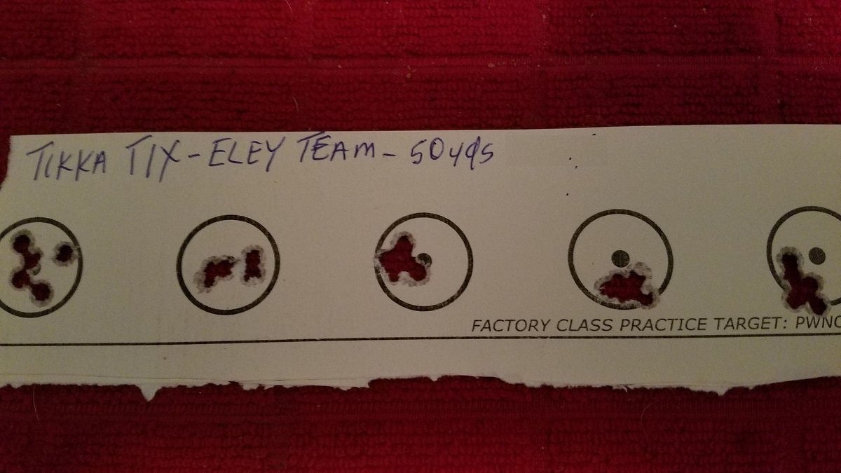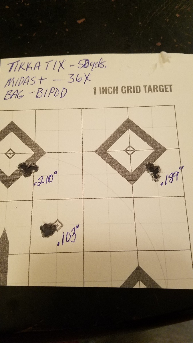 Took my T1X to the range for a little shooting a few days ago, was shooting up partial boxes of various ammo, CCI, S-K, Eley all performed as expected, The Eley Team I used did good as seen on the target, last 15 rounds was Lapua Midas+ which did awesome I fired these after I had shot the other ammos. The rifle has a 36x Sightron, 8 oz trigger, bipod and bag, I was quite pleased.