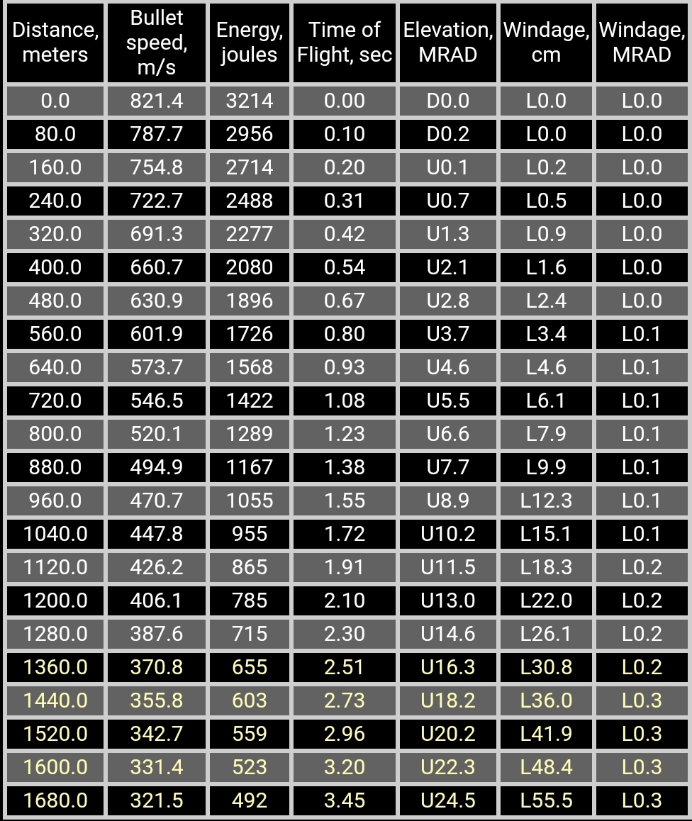 147 gr Hornady ELD-M bullet using AB custom drag curve (more accurate than G1 or G7 numbers)