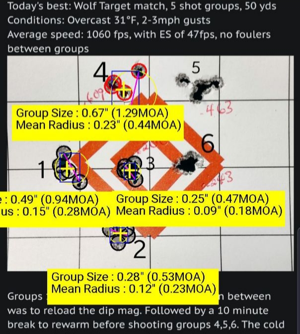 Today's best: Wolf Target match, 5 shot groups, 50 yds
