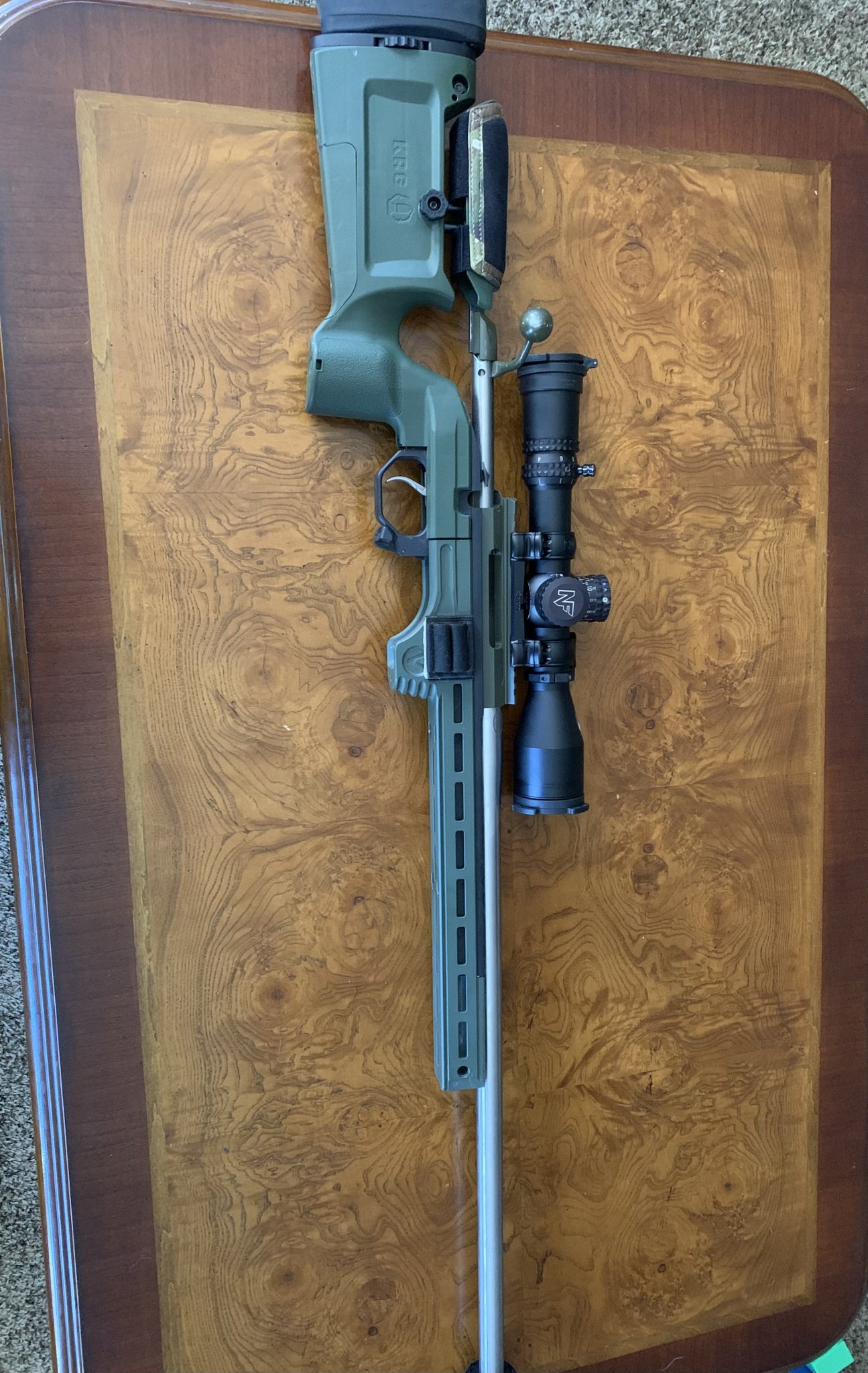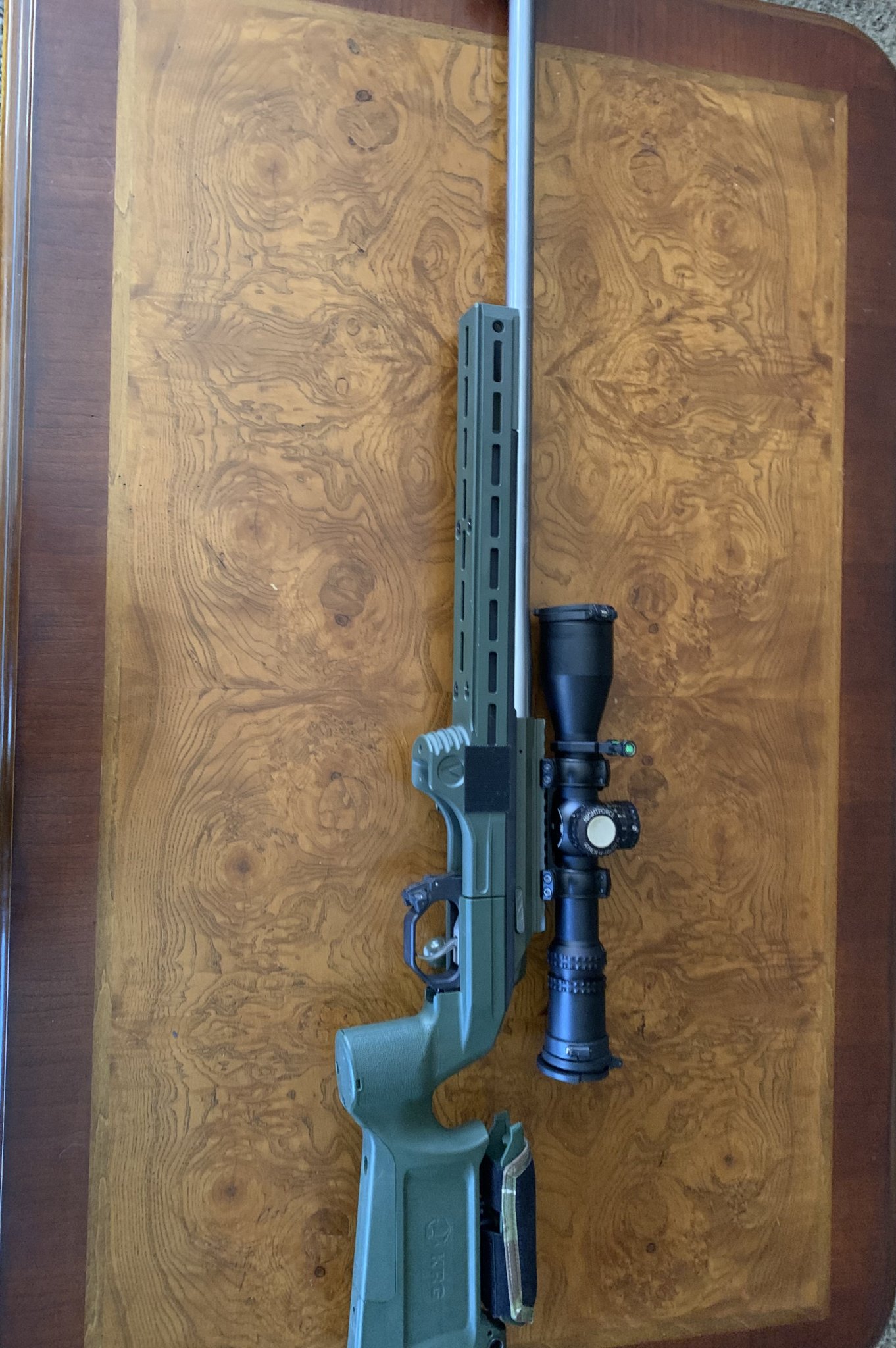 Tikka t3 action 20moa pic rail, yo Dave spring Tikka trigger, sterk bolt handle and shroud. KRG BRAVO chassis, Vision bravo forend with intigrated arca rail, weight kit spacers for buttstock. Three barrels, brand new 22Gt 26” alpha chamber 7.5 twist hawk hill barrel marksman contour chambered by Patriot valley . Two 25 creedmoor barrels 26”, one brand new rock creek 7 twist 3B contour chamber by Patriot valley. One proof 7 twist comp contour, 300 rounds shot through it chambered by Preece precision. Shoots great 1/2 MOA or better with my hand loads. All barrels 5/8x24 muzzle threading. Other accessories available, another 6 creed barrel. A few scuffs on the rifle from use, but really good shape. 2500$ SCOPE NOT INCLUDED