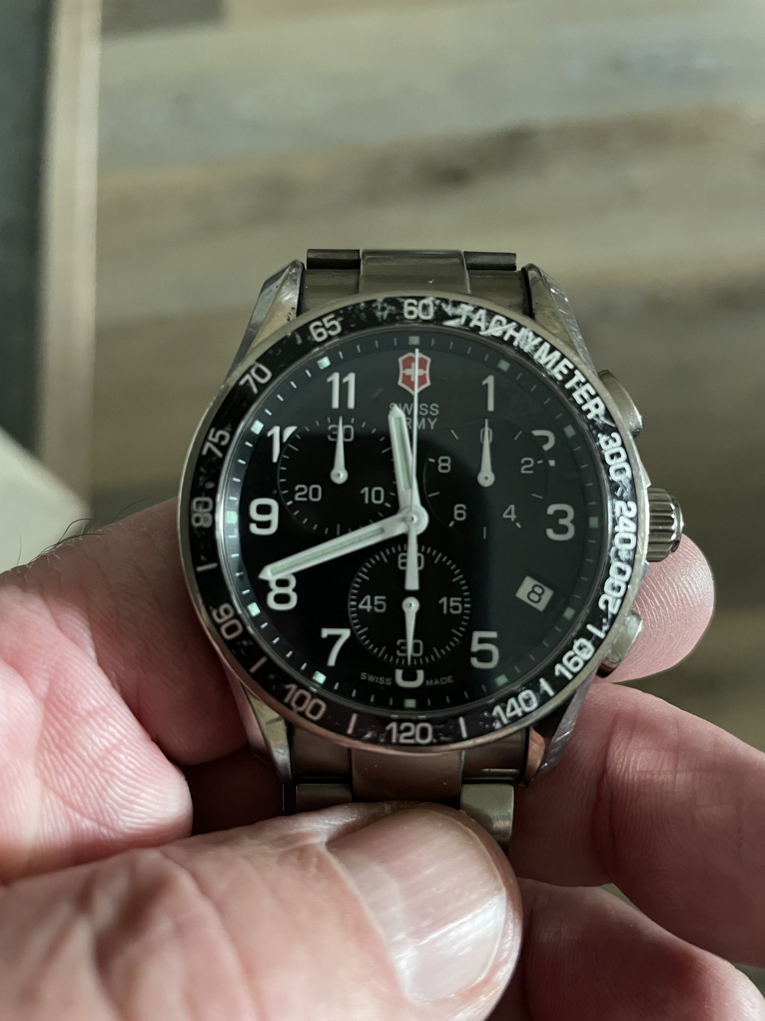 Hey, that’s looks like my watch….My every day beater, probably 15 yrs old now titanium case Safire crystal swiss army.