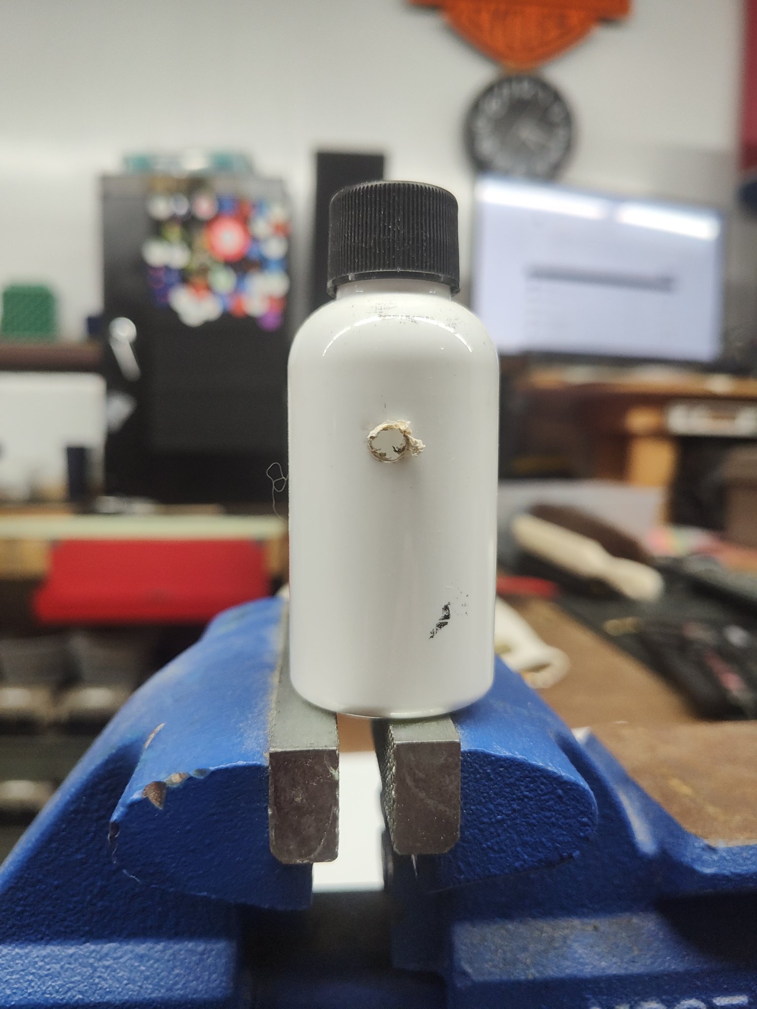 Yesterday, my brother & I were shooting 100 yard targets. I normally shoot at poker chips with a contrasting yard dot in the center for contrast. Chips are 1.5" in diameter, yard dots are .75 diameter. Hitting the chip isn't difficult, hitting center of dot is.