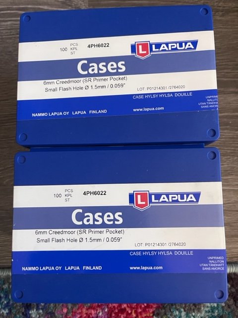 - 200 (two boxes of 100) brand new unopened 6mm Creedmoor Lapua Brass