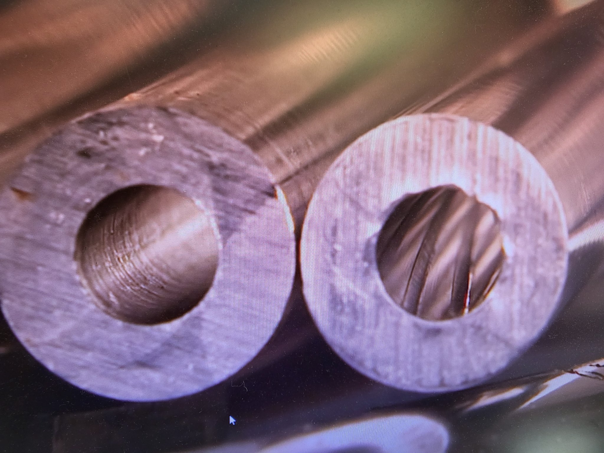 Here are a couple more pic's. The right pic shows the bore finish prior to a button being pulled thru. That finish isn't the greatest if that got bore reamed. Look close at that pic and you can see the bore reamer marks on the top of the lands.