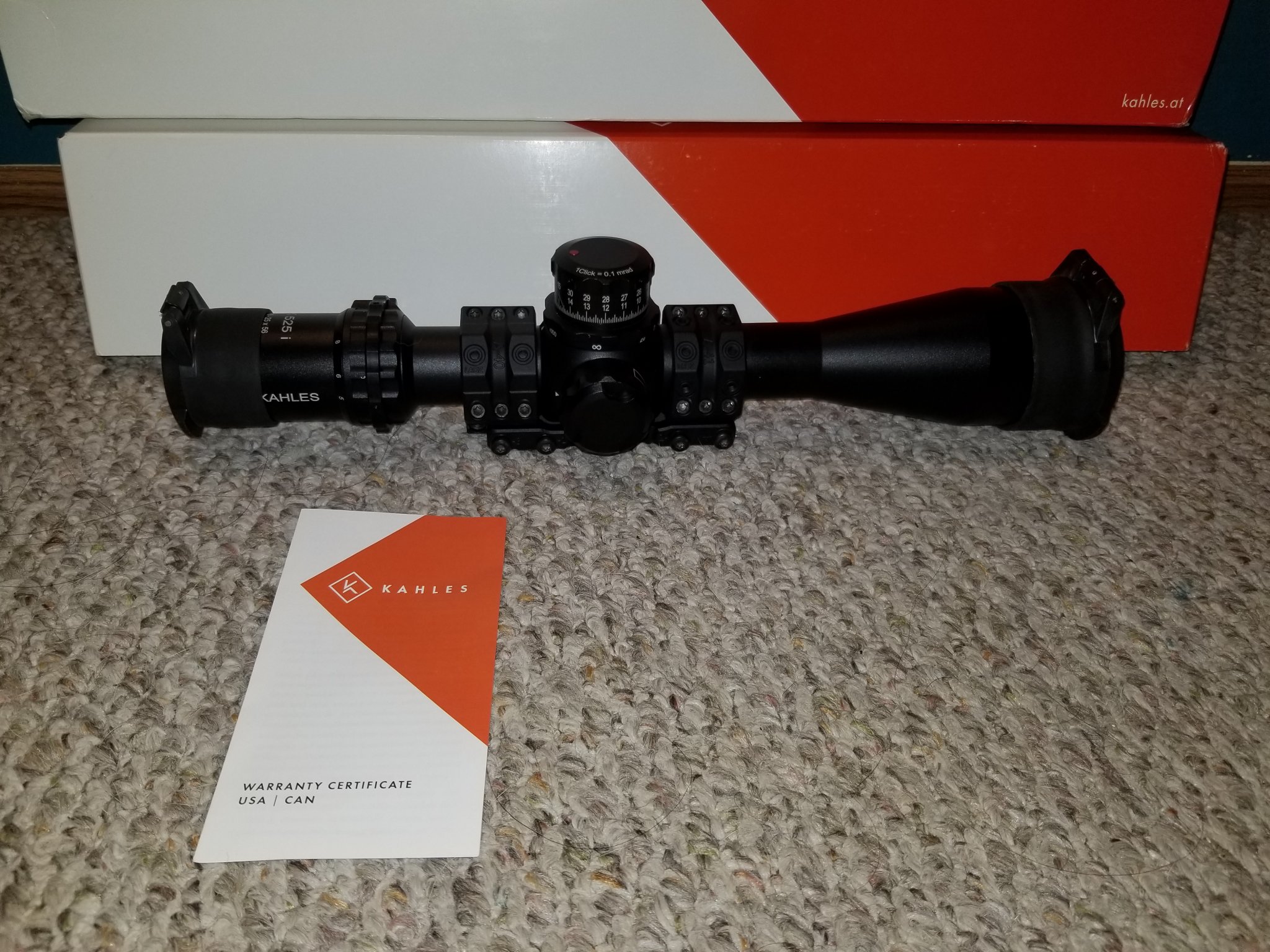 Kahles 525i SKMR3 lsw CCW in great condition. Comes with sunshade, switchview throw lever, scope caps and spuhr 4001. I have the box and the warranty card that is blank. Insurance is on the buyer. I take PayPal friends and family or regular plus fees.