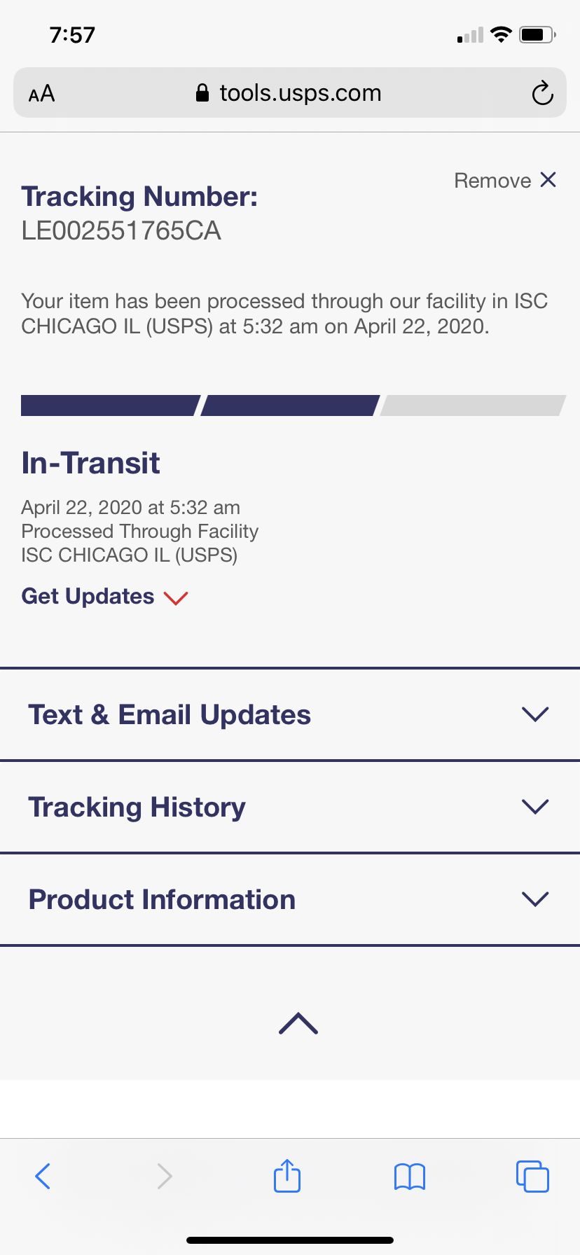 Mine arrived in Chicago on the 22nd and tracking hasn’t moved. I’m talking with Ed from TT and I’ve submitted 2 claims to USPS that are over a week old with no responses.