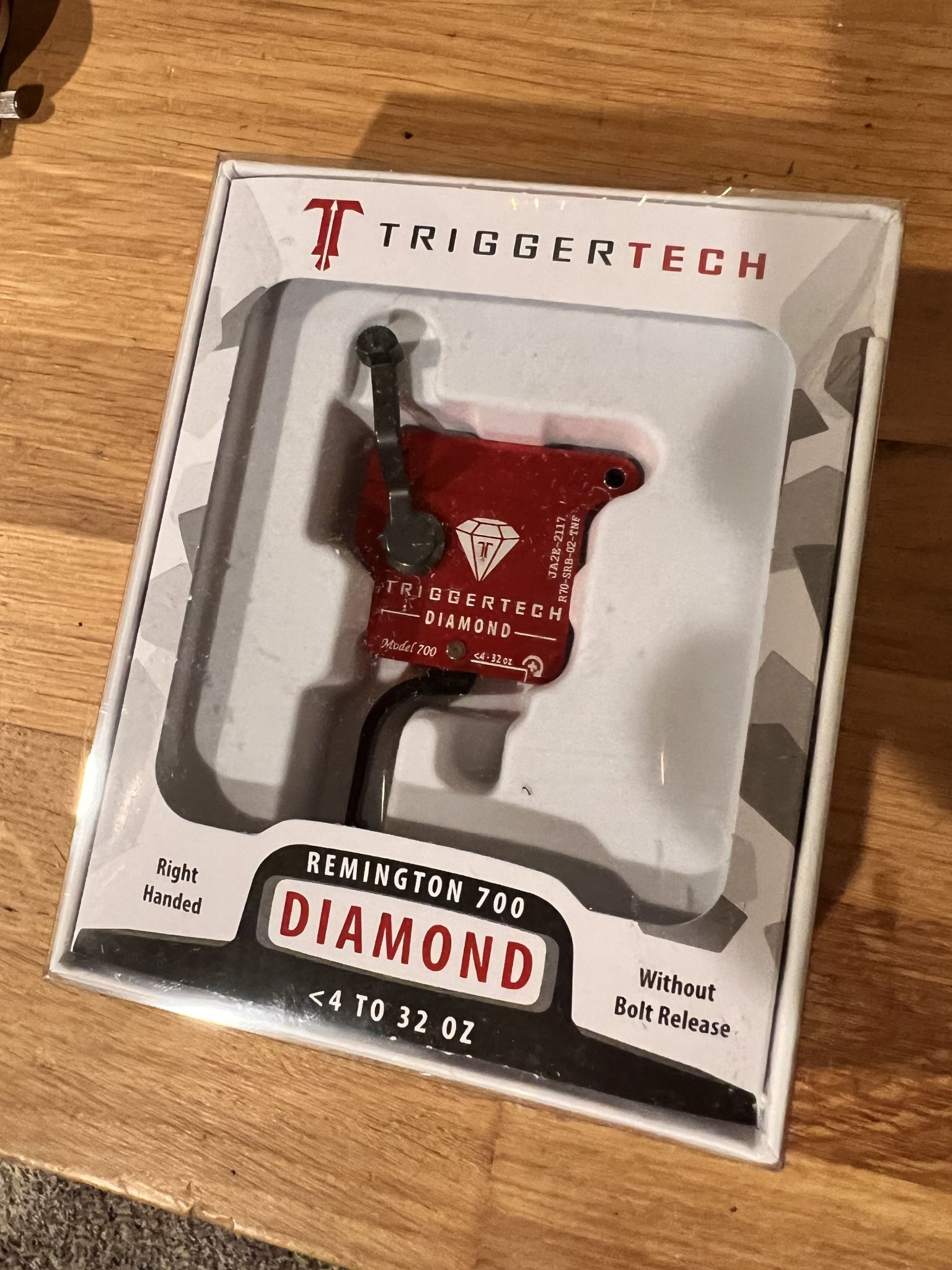 Selling a NIB TriggerTech Diamond RH Flat shoe trigger for Remington 700 style receivers. Box is still sealed.