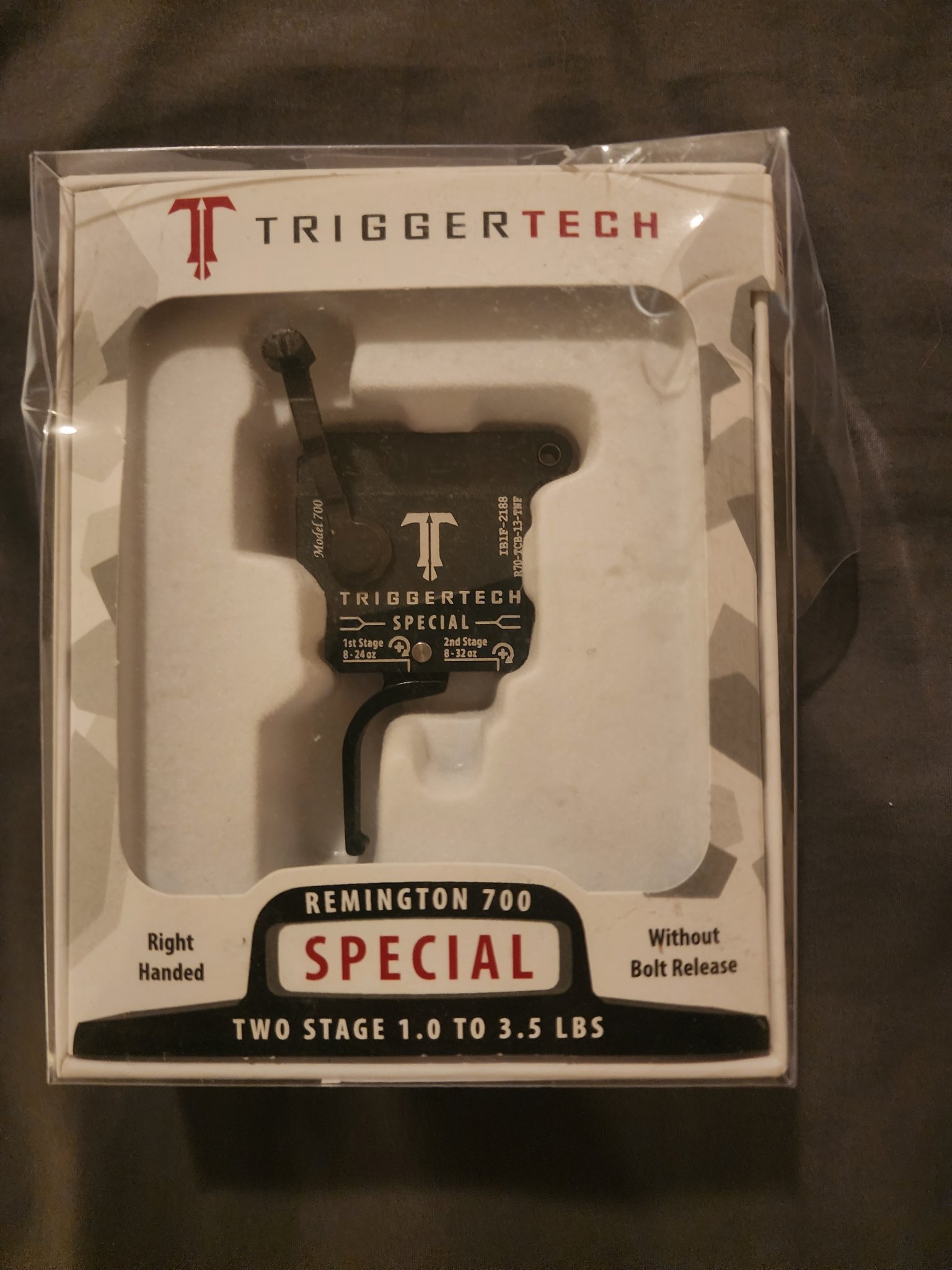 Triggertech special for Rem 700/clone. No bolt release and set up for the hanger. Moved on from a build and don't need this anymore. I opened the package to look at it, its never been mounted. Would trade potentially for tikka related items and fishing gear for steelhead.