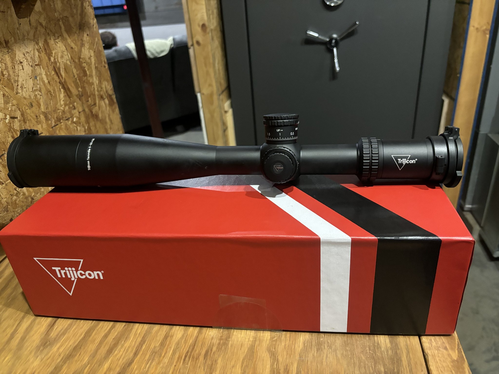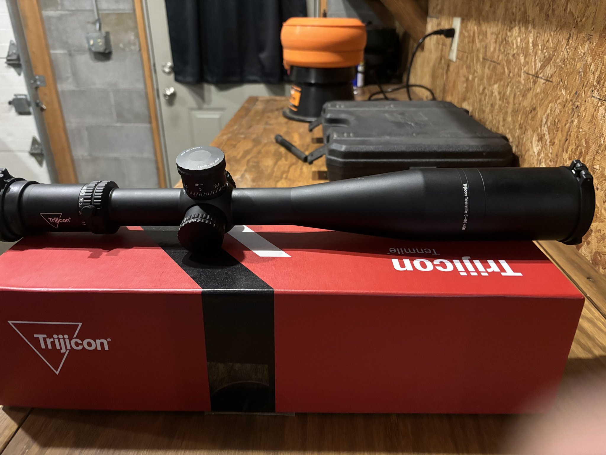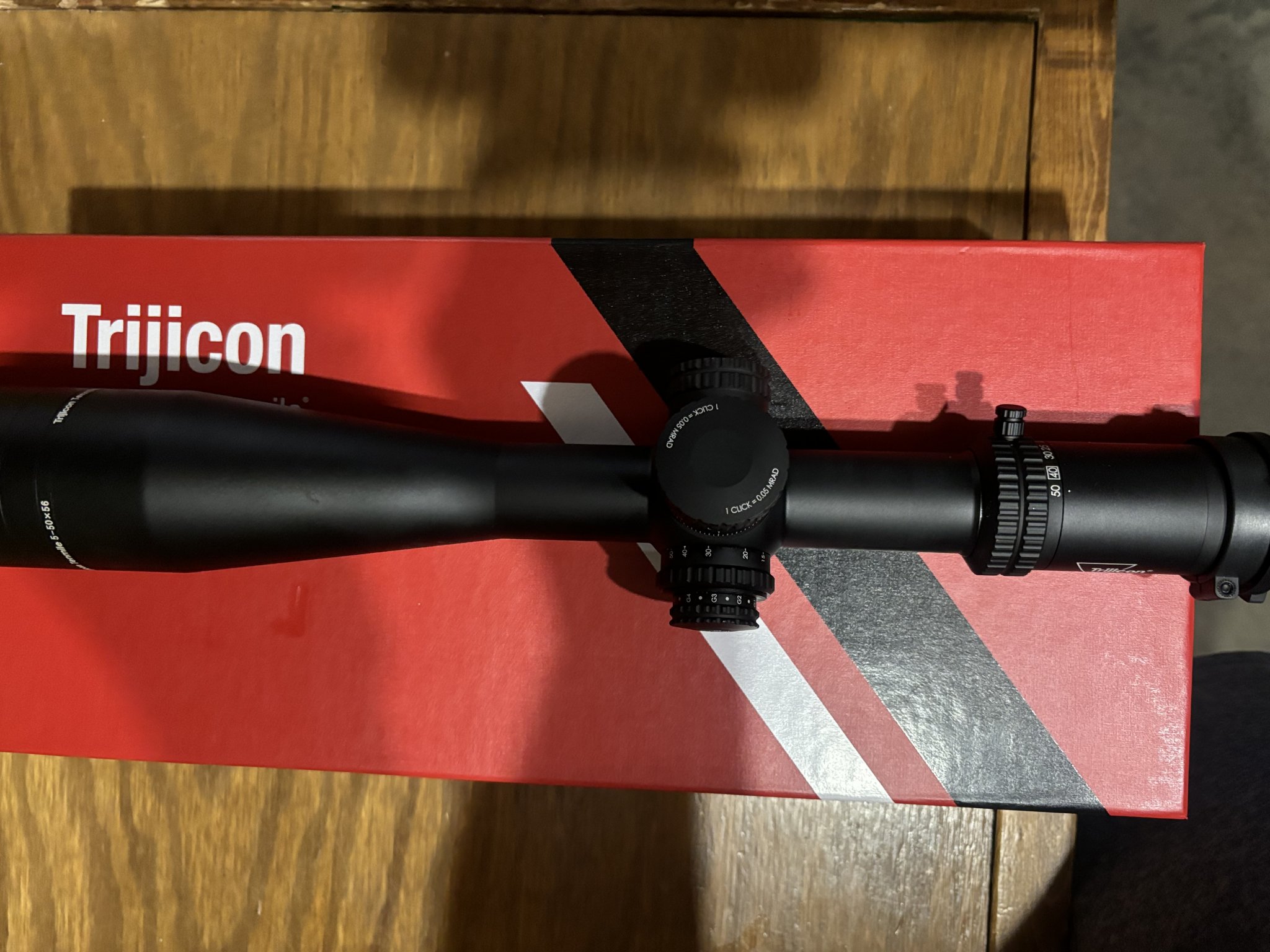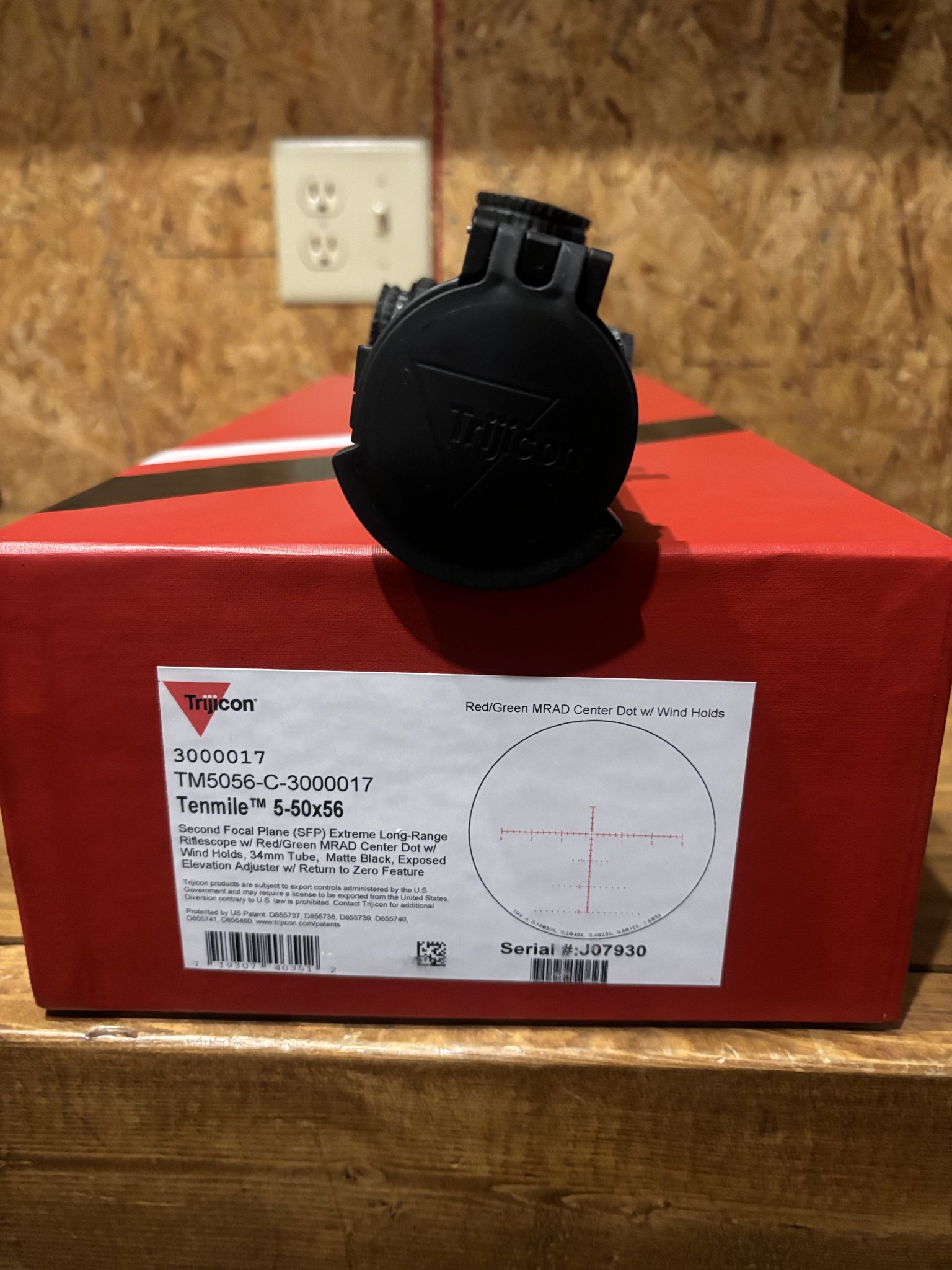 This was mounted messed with a little bit and taken off just gonna stay with moa for the time being it’s a trijicon tenmile 5x50x56 SFP scope in mils 34 mm tube excellent glass have the same scope on one of my other gun in moa and I like it a lot scope comes with everything like when it was new $1500 shipped conus pm me please do to all the scammers thanks for looking