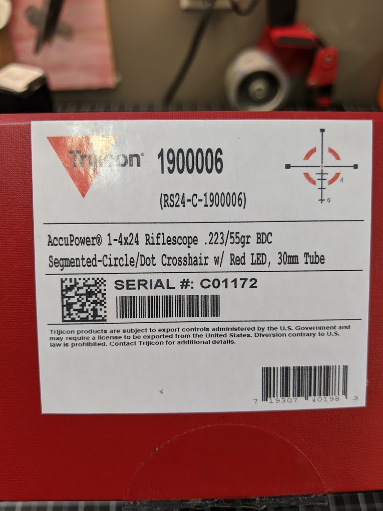Trijicon Accupower 1-4 x 24 - 223/55gr BDC, Segmented Circle/Dot Crosshair w/ Red Led and 30mm Tube.