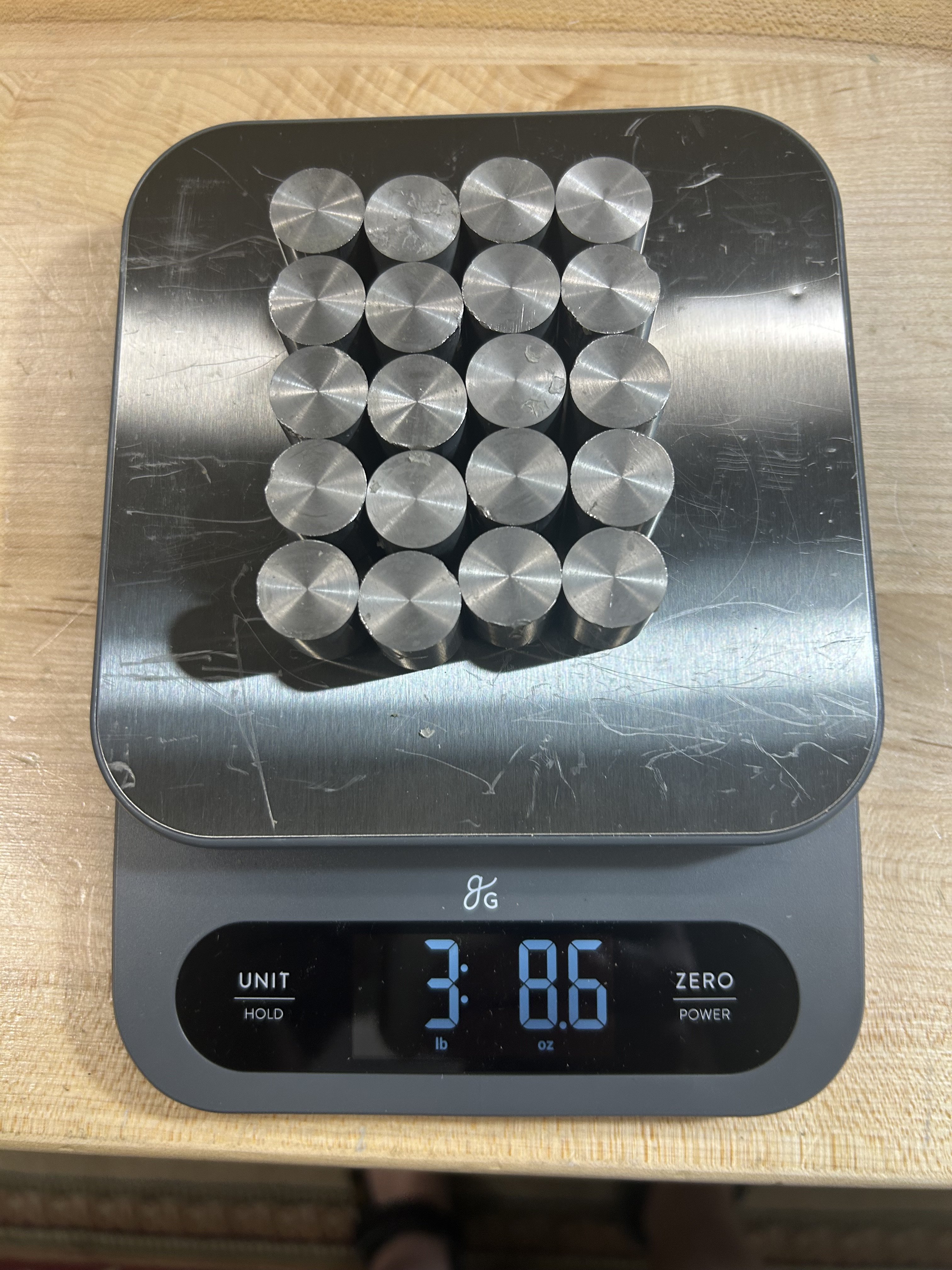 I bought these installed in a Genesis II stock, wanted to try a super heavy configuration. With this full weight kit and brass ARCA rail, the stock weighed almost 11 lbs, rifle weighed about 28 lbs. It was just too heavy for me to move effectively.