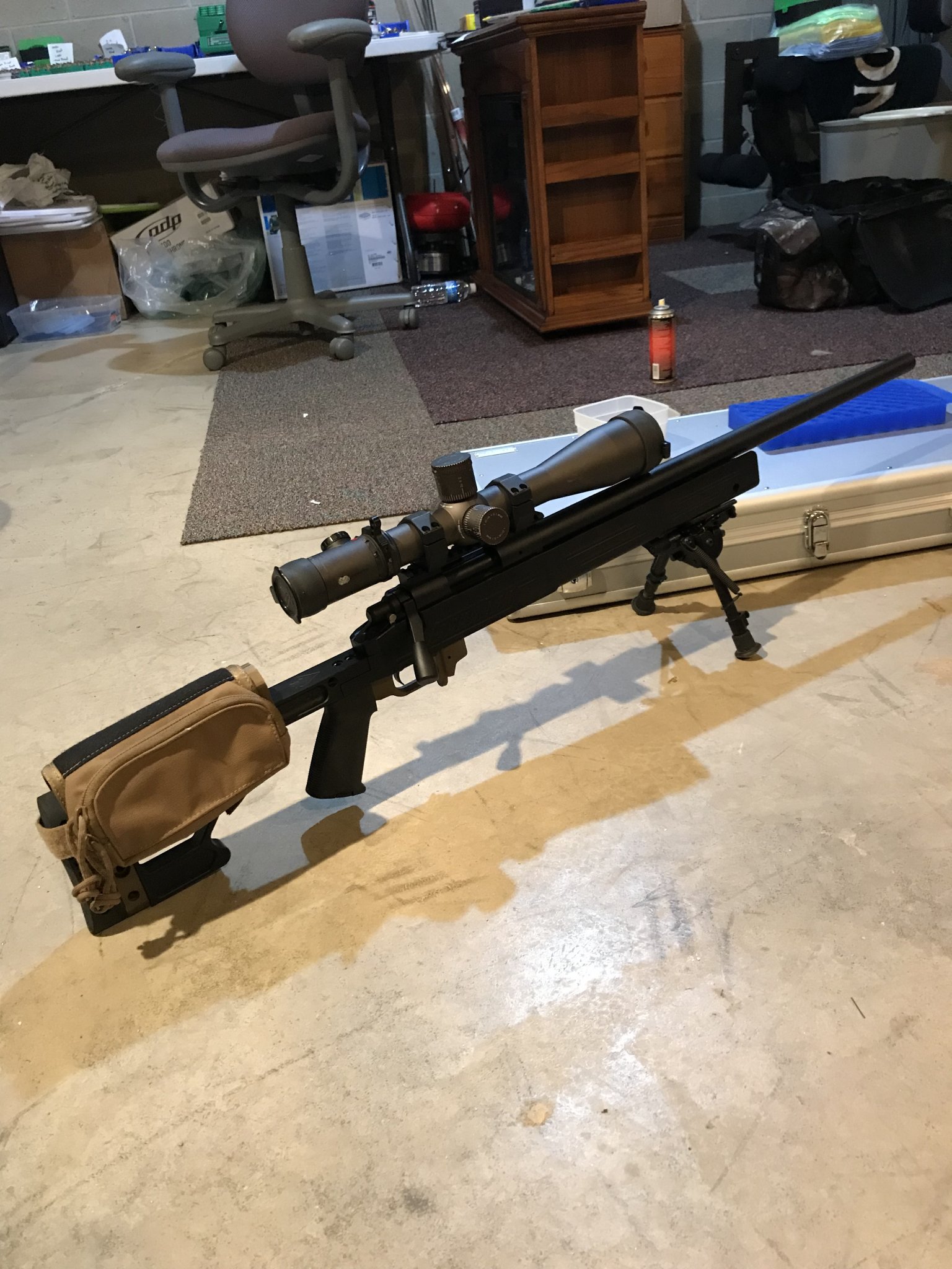 So this year I plan to attend some local “sniper” steel matches I believe they are 100-700 or so on steel plates. Anyways, I purchased a rem700 in 223 that was built from Kampfeld customs. It sits in a mcree chassis, 24in bartlien barrel 8twist. Rifle basix trigger. Vortex razor gen1 scope. The modified accurate mag works flawless with 75g amax. The barrel is threaded as well.