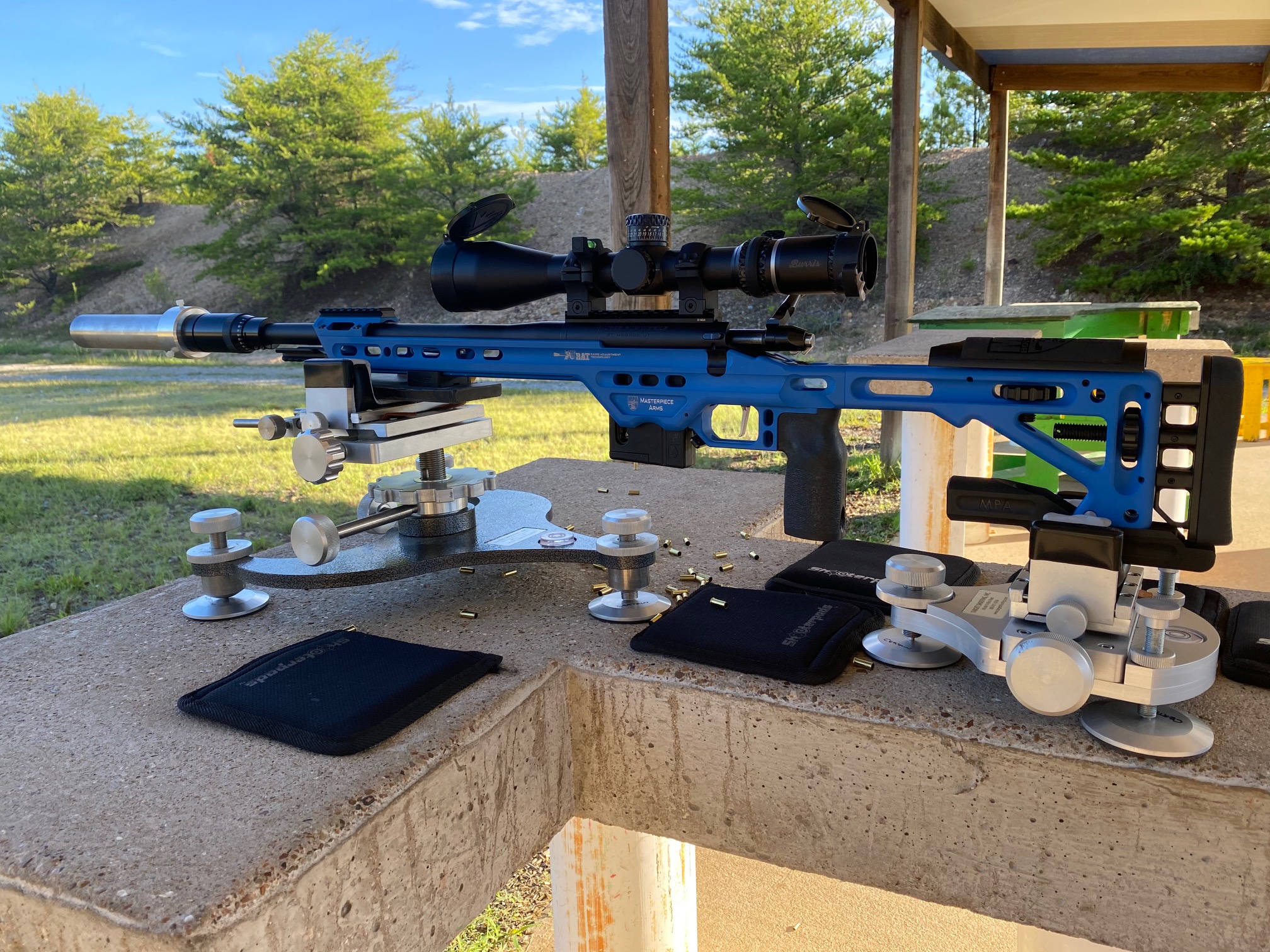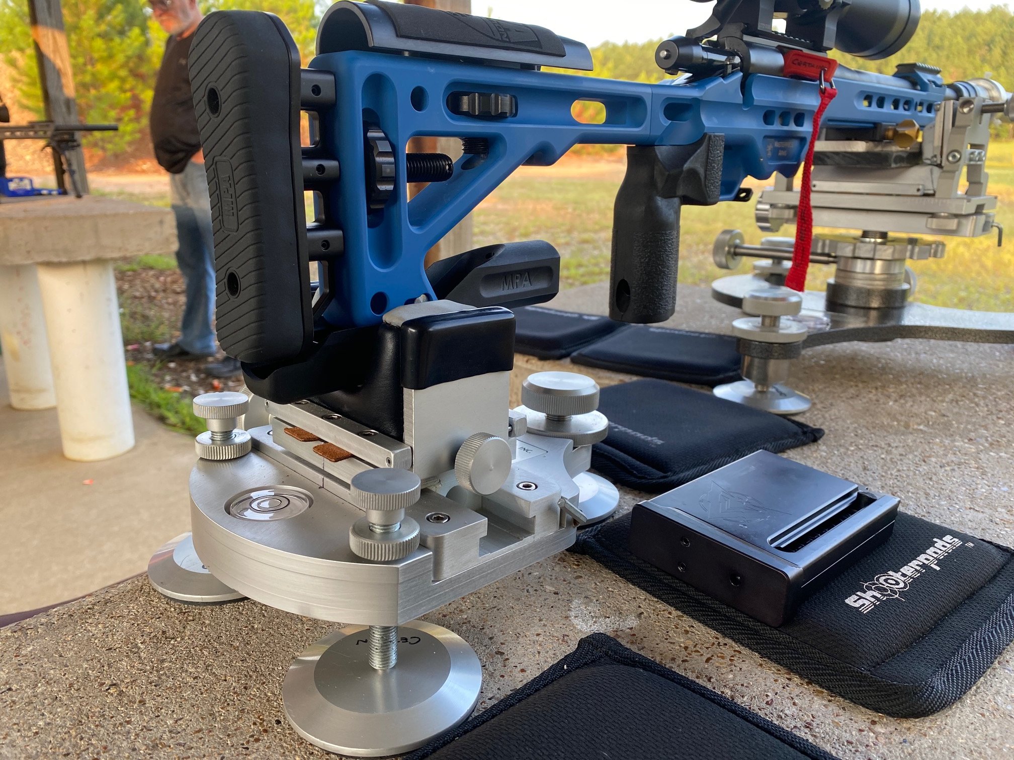 Good afternoon Sagittarius. Pics attached with Vudoo on TargetShooting.com 2400 and Mini 9 Rests. I was very pleased with the way they worked. The adjustablility of the 2400 top is very nice. The little Silver Bags are very firm and slick, slick, slick. I like the system. I am still learning the most optimal way to set up for a benchrest type shot. But I am pleased.