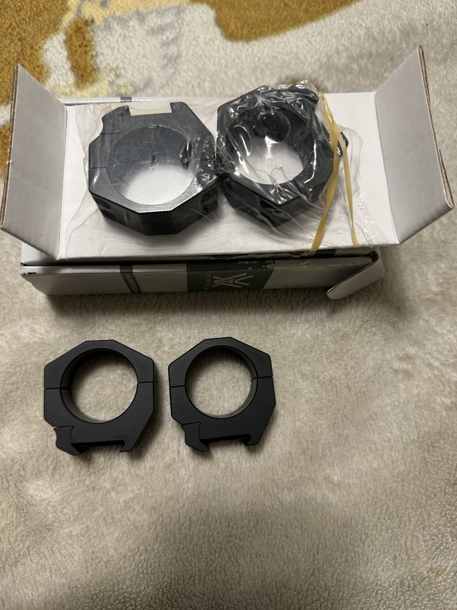 #3 two sets of 34mm rings. 1 set of lows that are vortex(Seekins) marked.one set of mediums that are Seekins SOLD! Both sets are gently used. Let's try 90.00 each shipped