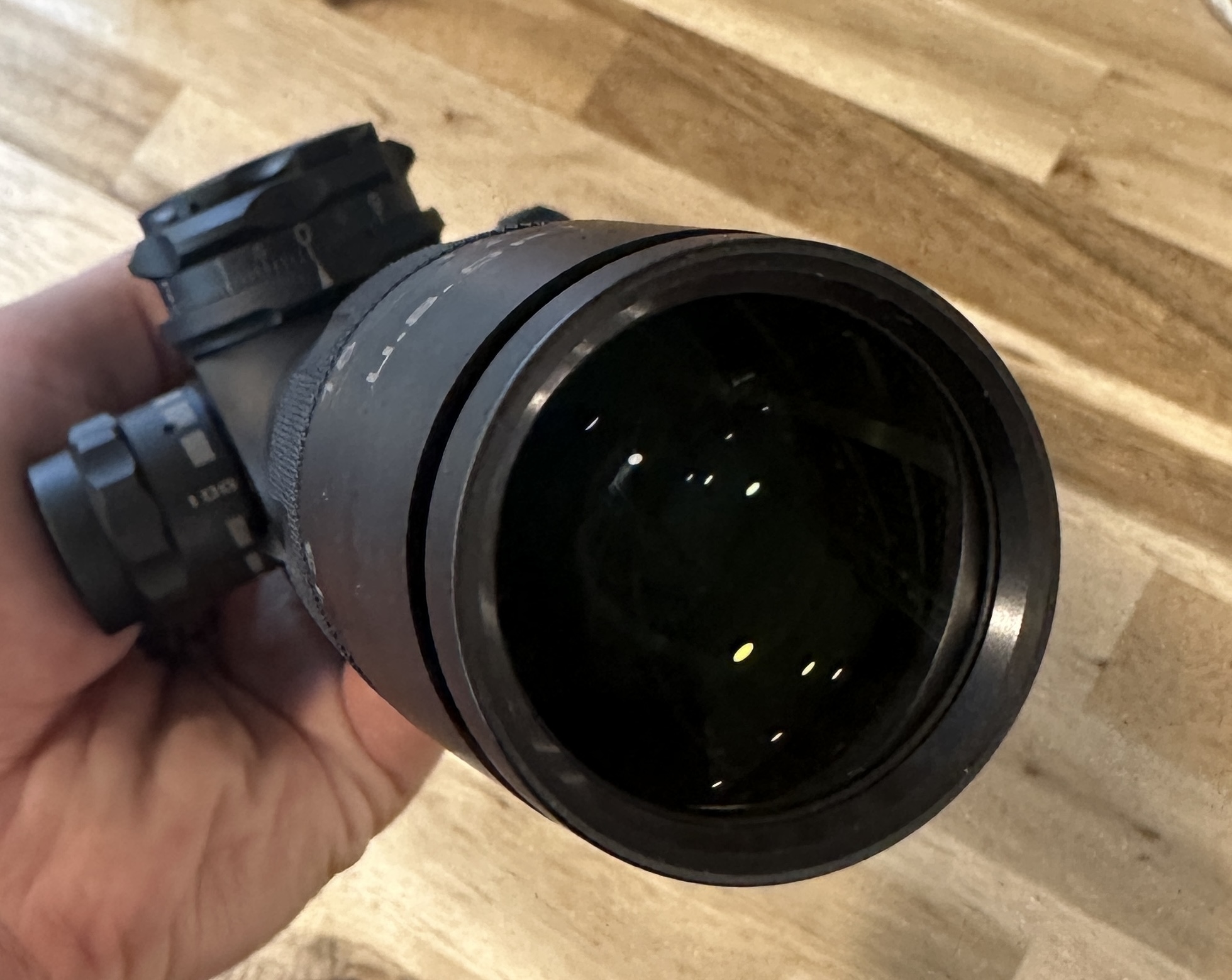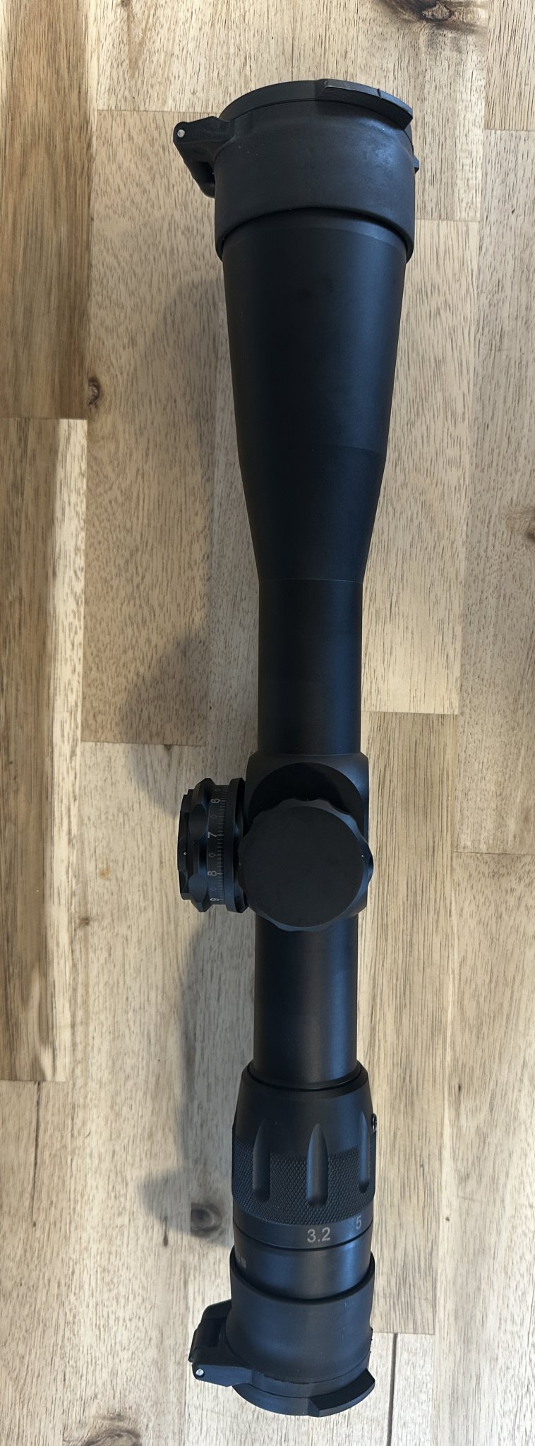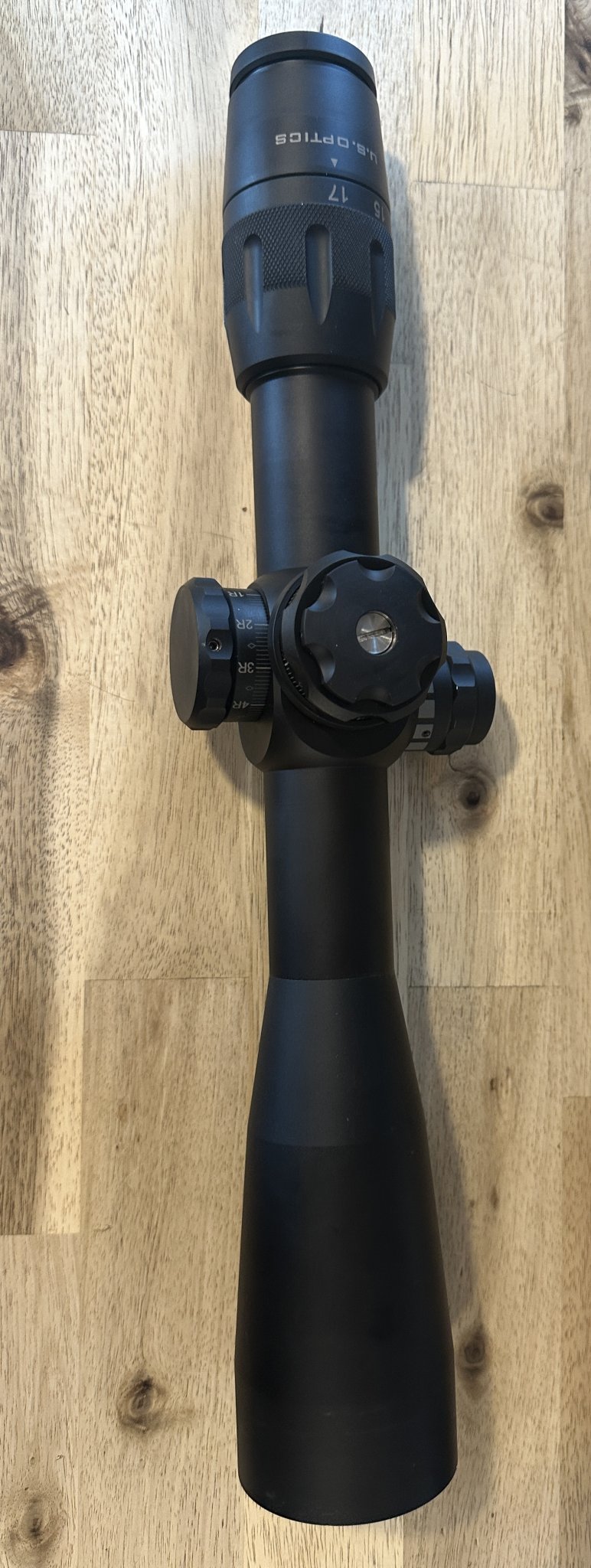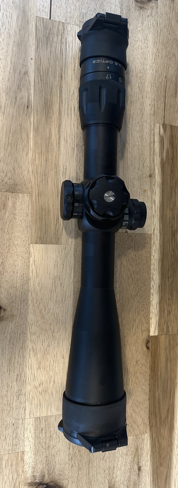 Used Us optics B-17 3.2-17 tremor 3 red illumination, has vortex caps just to keep the glass clean, clean glass and a few small marks from range trips, slight ring ghosting comes with box but it is not the original. came with a trade just isn’t my cup of tea. sent to USO for check up came back cleaned and oil reset to factory