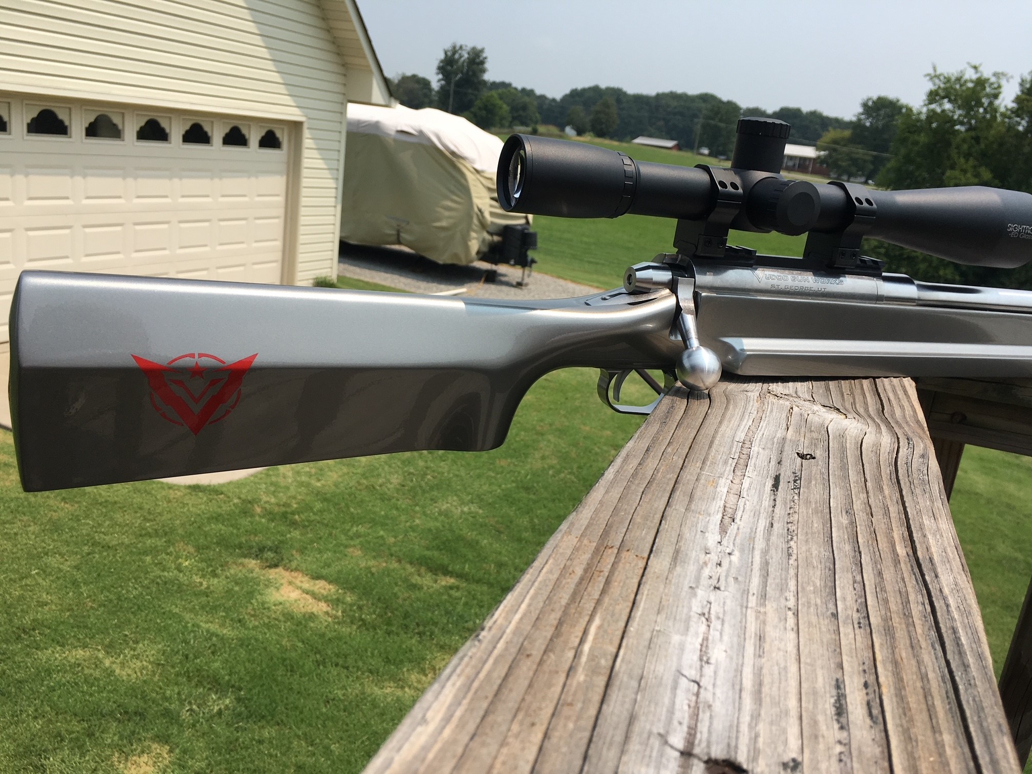 Here is my V22s, in the Cerakote Gray/silver they offer as a color option. The Vudoo logo is their red, I just told them to select a "red" color that would compliment the gray/silver. Very pleased with the outcome. It has some very small/fine metalflake, or the appearance of metal flake in the paint as there are bits of brighter light being reflected in the sun, but is not obnoxious like the large metalflake seen on fishing boats.