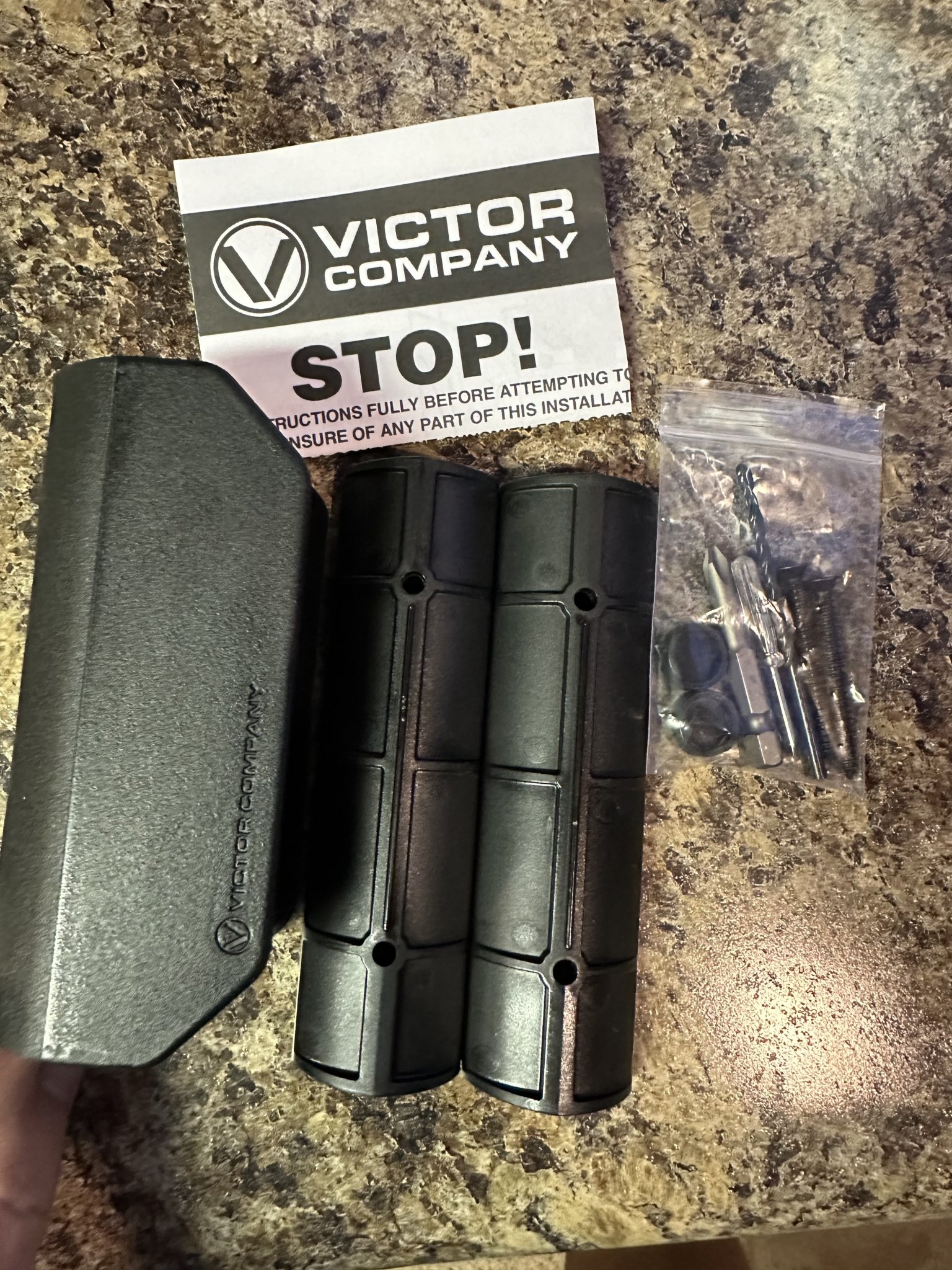 Bought this new, but ended up not needing it. I opened the package, but never installed. This includes the two spacers, install kit and the caps for the cheekrest. Works on the Victor Titan stock but also many other types of varmint style stocks. I have seen it on Manners, CZ MTR's, Boyd's pro varmint, etc... The photo on the stock is just for show. Was not installed.