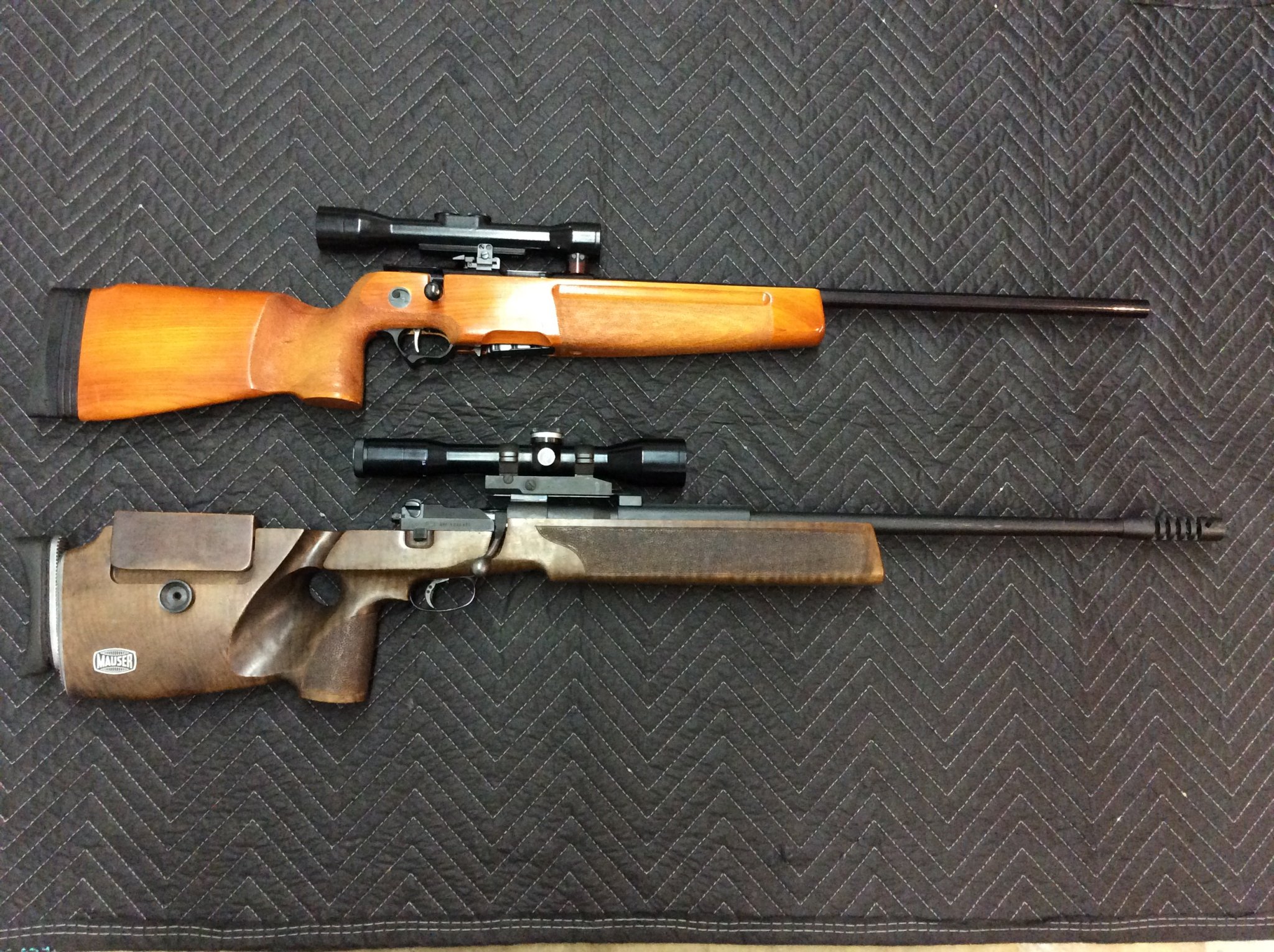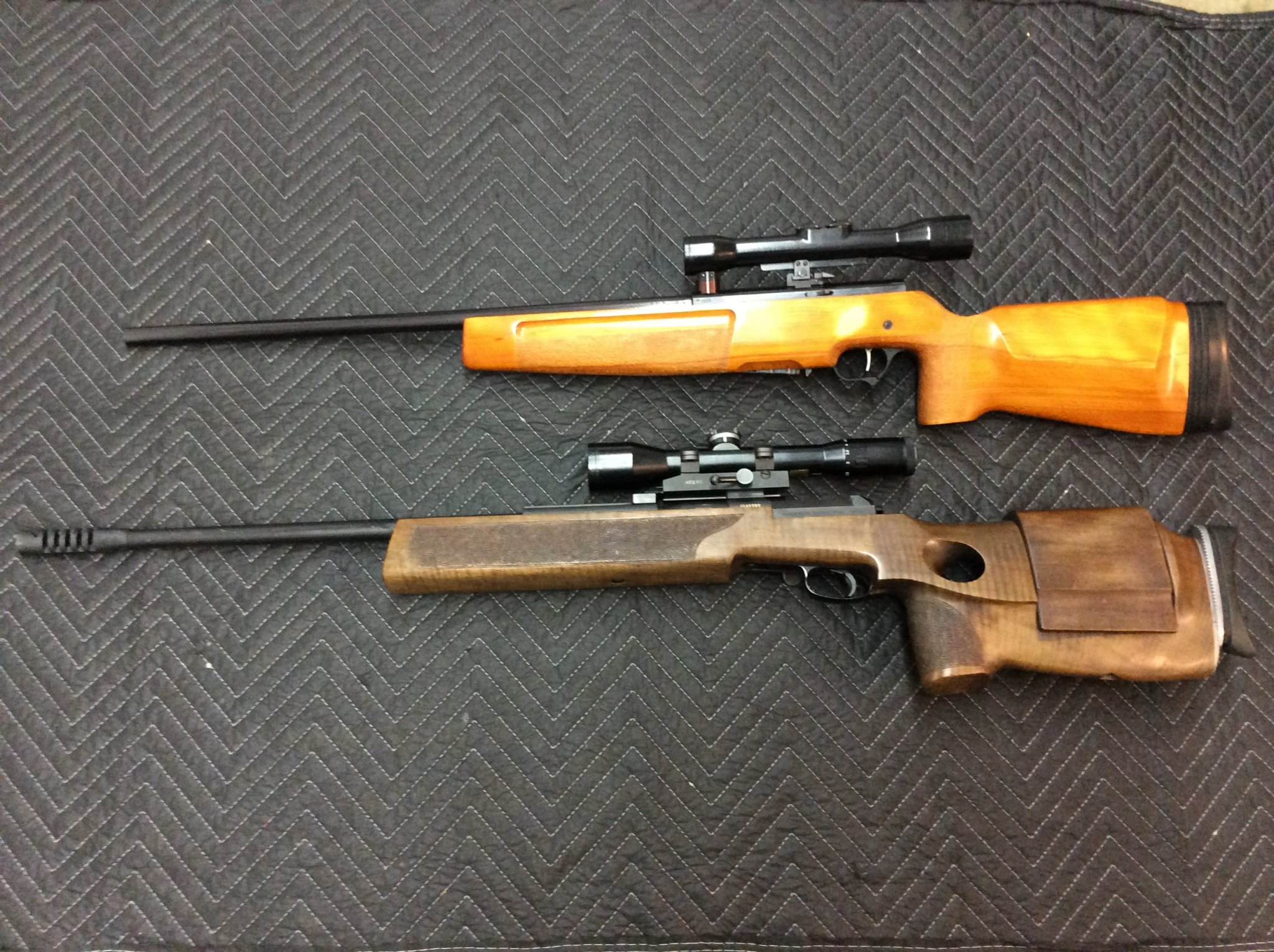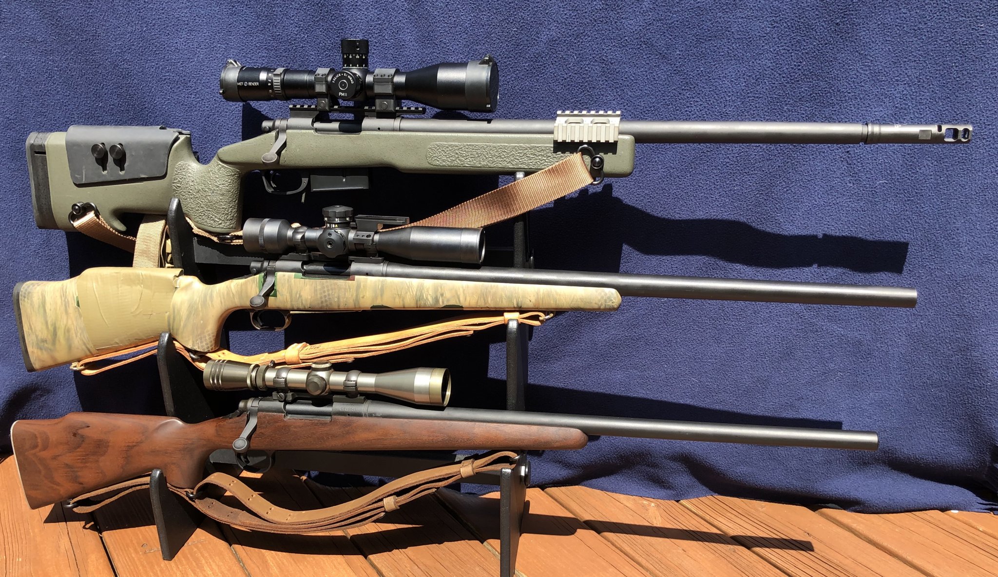 Bottom stock is a Navy Mk 13 Mod 0 (300 WinMag) take-off gray McMillan A2 stock also painted tan in service (a work in progress).
