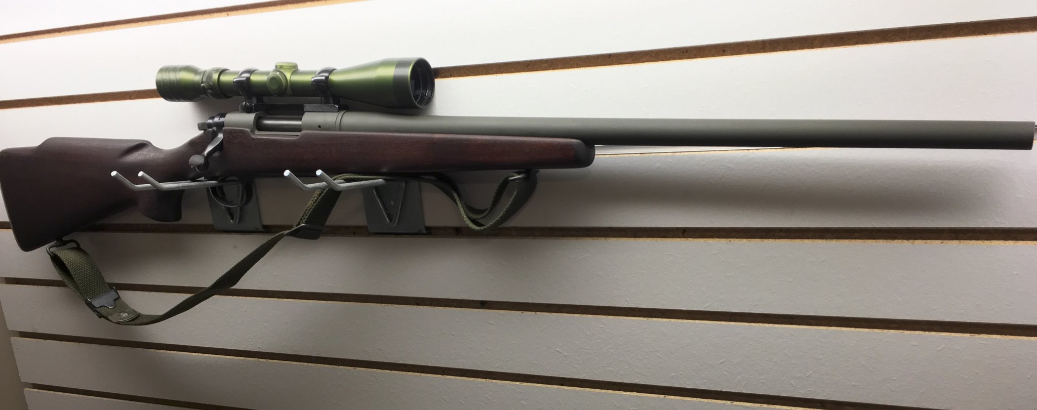 M40 was in service from about 1967 to 1977: wood stock with a green anodized scope or a black replacement Redfield 3-9x scope.