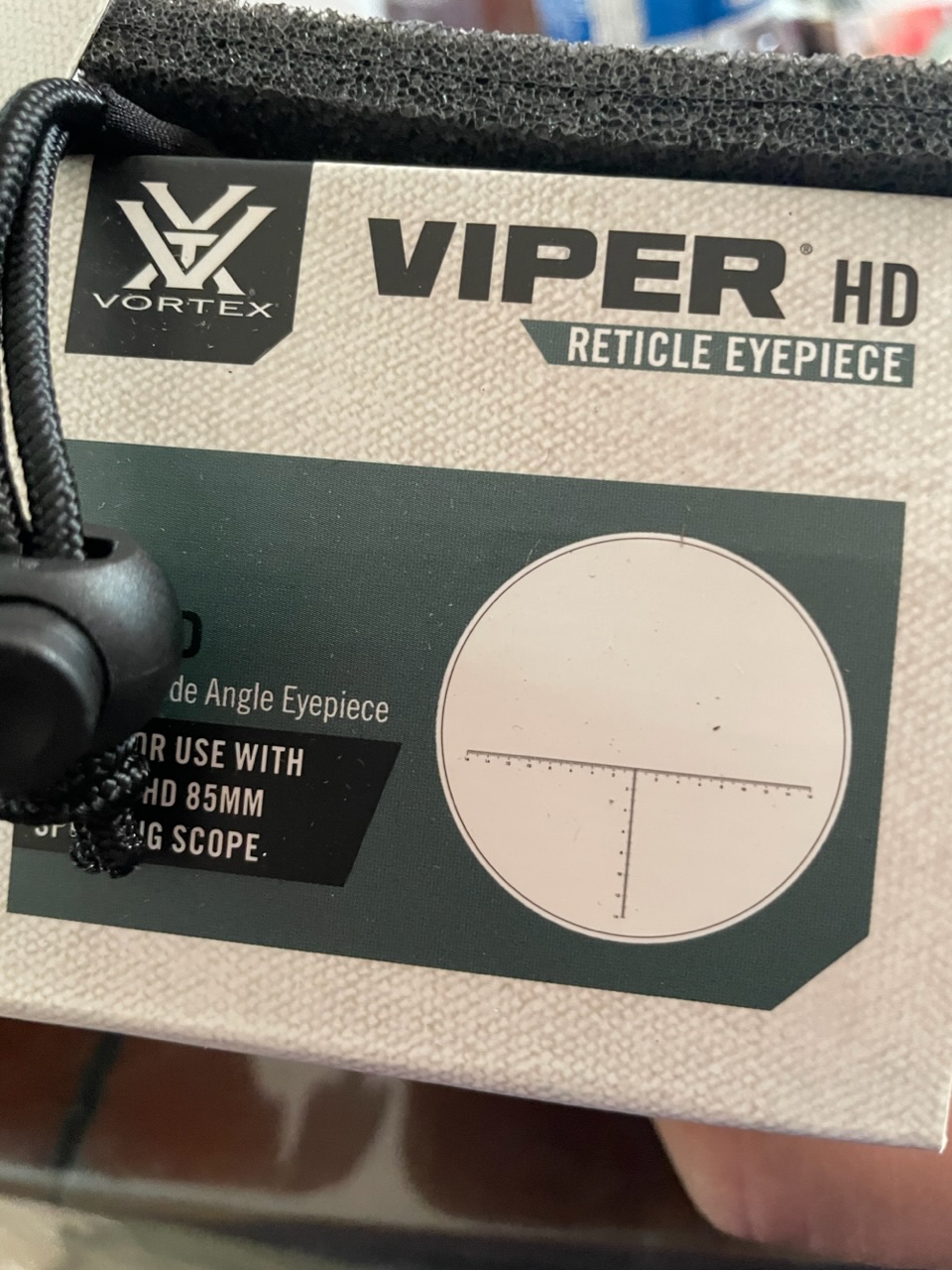 20-60x85 Viper HD angled. Selling my like new spotter. Took out of the box to install the Mil Reticle eyepiece it’s been to the range once. With this eyepiece it’s 33.5x