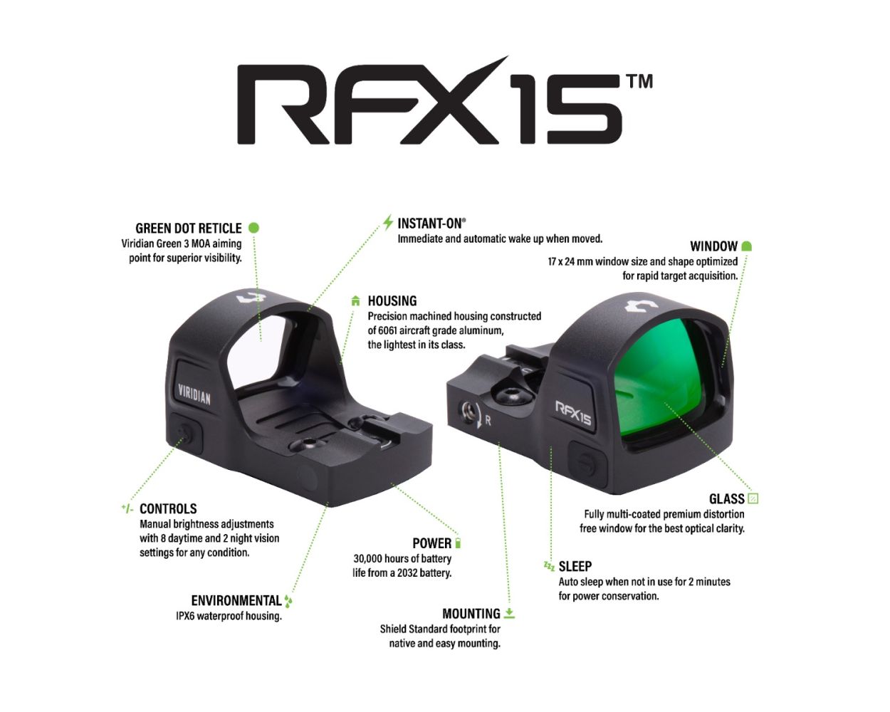 RFX15 ($150) - https://viridianweapontech.com/products/optics/rfx-25-green-dot-reflex-sight