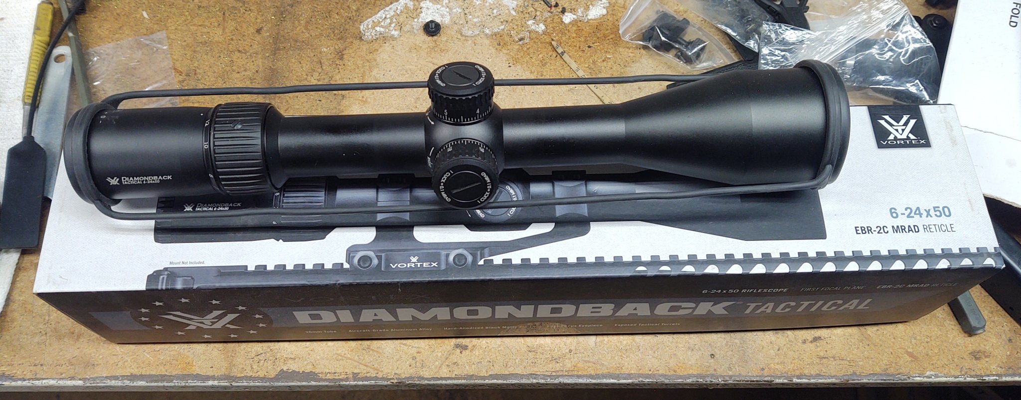 This was on my daughter's 6.5 Grendel, and we're swapping to something with a little less going on in the reticle until she gets the hang of it. About 75 rounds of 123gr Hornady Black under it. Some small marks on the tube from rings, as pictured. Includes original box, bikini cover, etc. If you need rings let me know, I probably have a set of Warne around here somewhere for a good deal.
