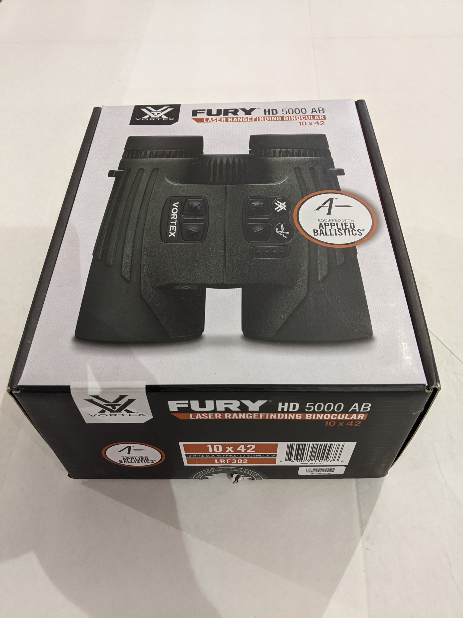 Vortex Fury HD 5000 AB rangefinding binoculars for sale. This is the newer version with Applied Ballistics built in. 10X42, built in bluetooth for pairing with a Kestrel or phone,