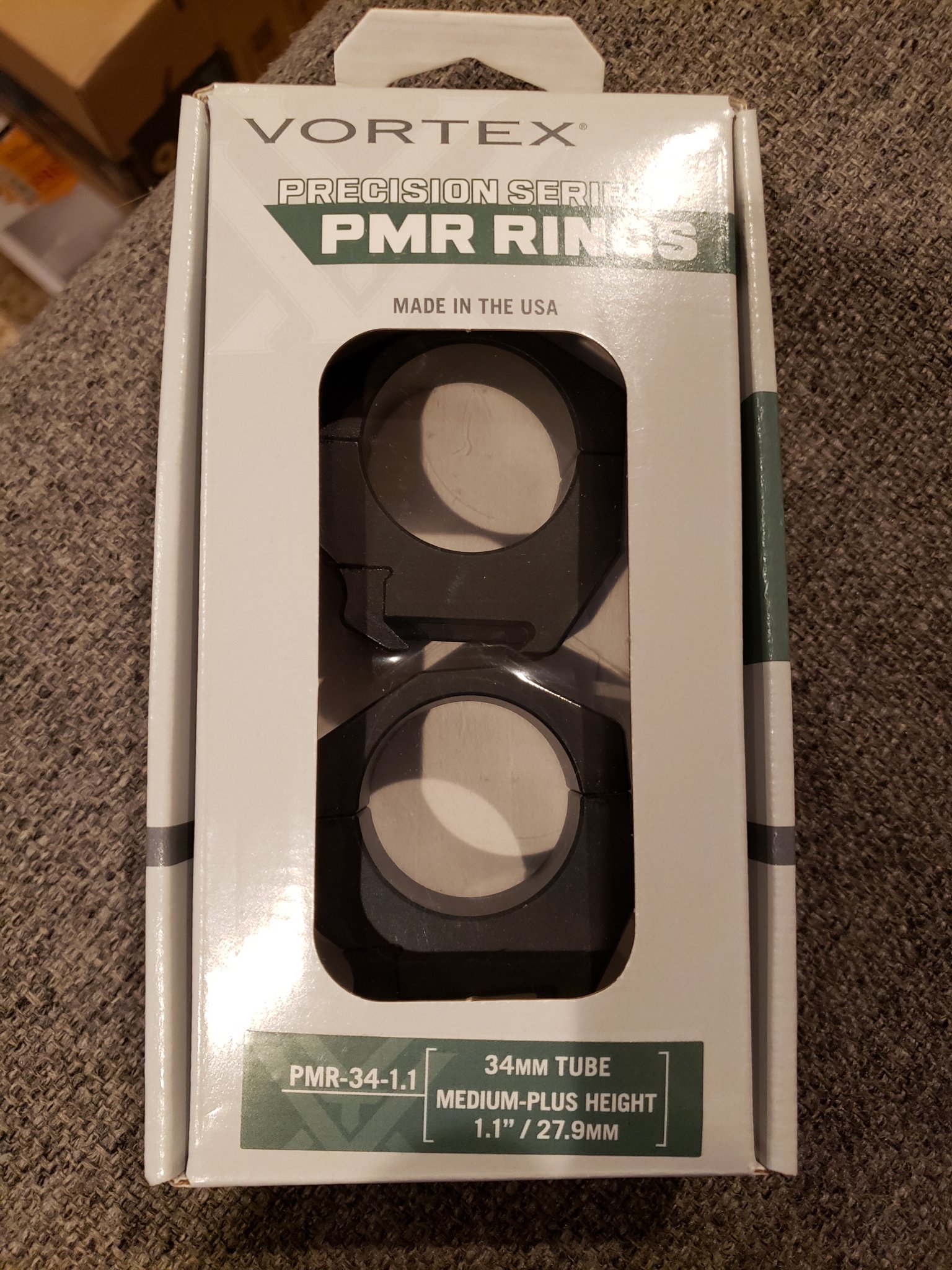 For sale Vortex Precision PMR scope rings new in box, 34mm size medium plus height 1.10" / 27.9mm.