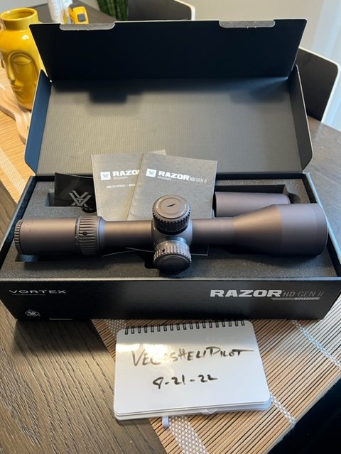 Vortex Razor G2 4.5-27x56 with everything seen pictured. MRAD, EBR7C reticle.