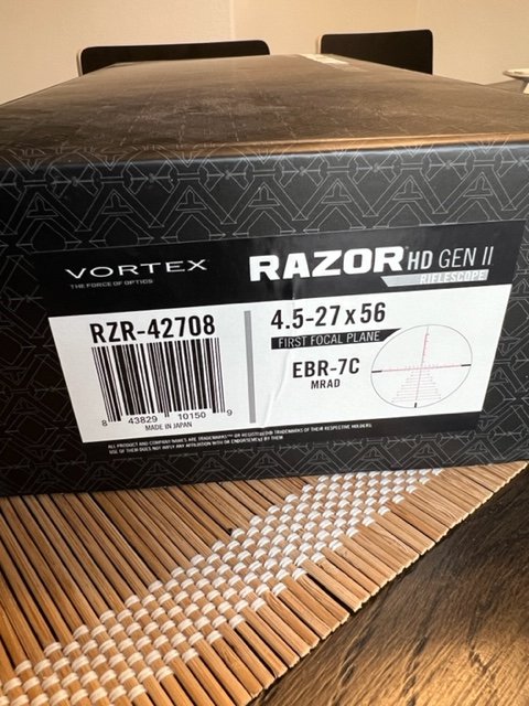 SOLD Vortex Razor G2 4.5-27x56 MRAD EBR7C