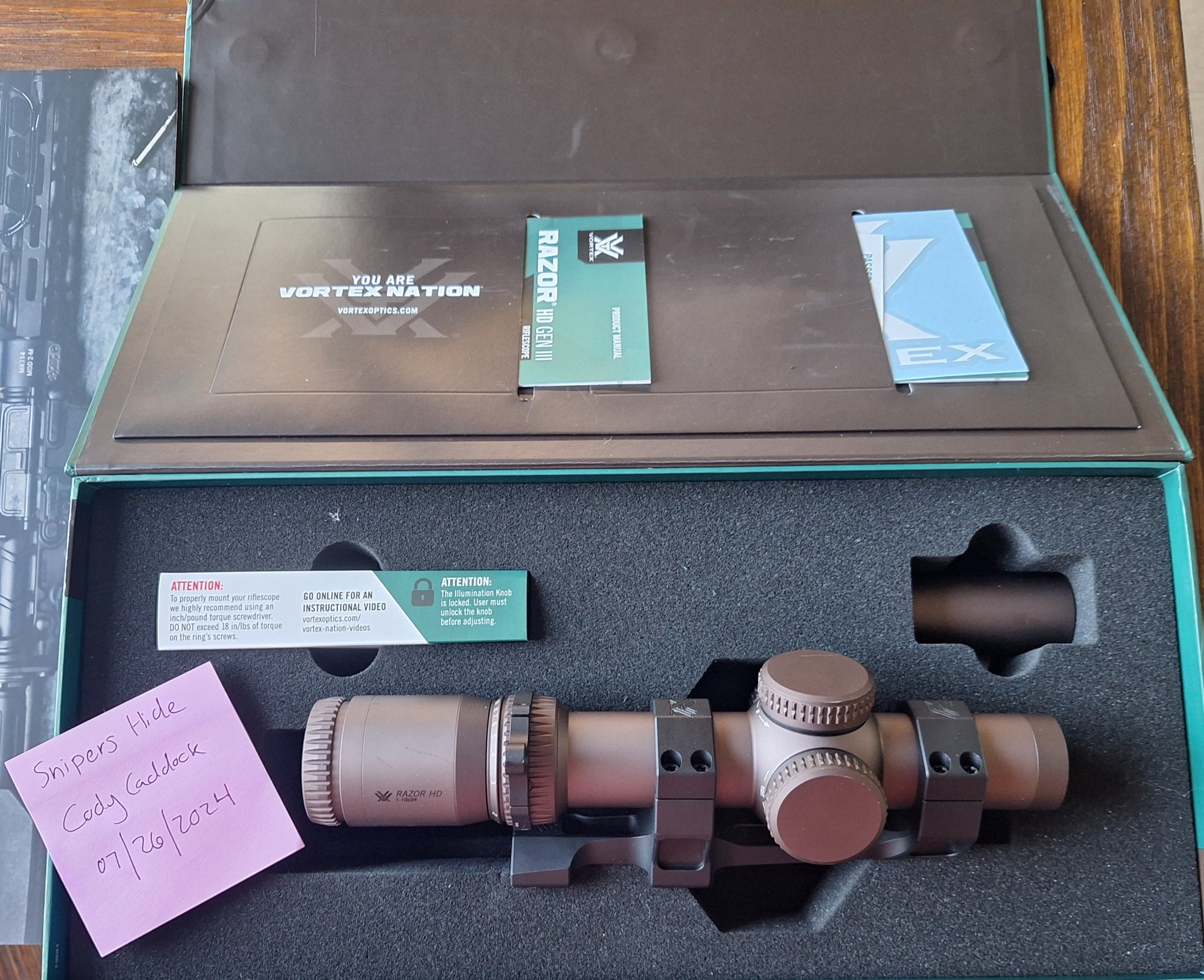 I'm selling a very lightly used Vortex Razor Gen 3 1-10x24 EBR-9 MRAD & Vortex Precision Extended 0 MOA cantilever mount. Ended up trying an NX8 2.5-20x50 and liked it more than this