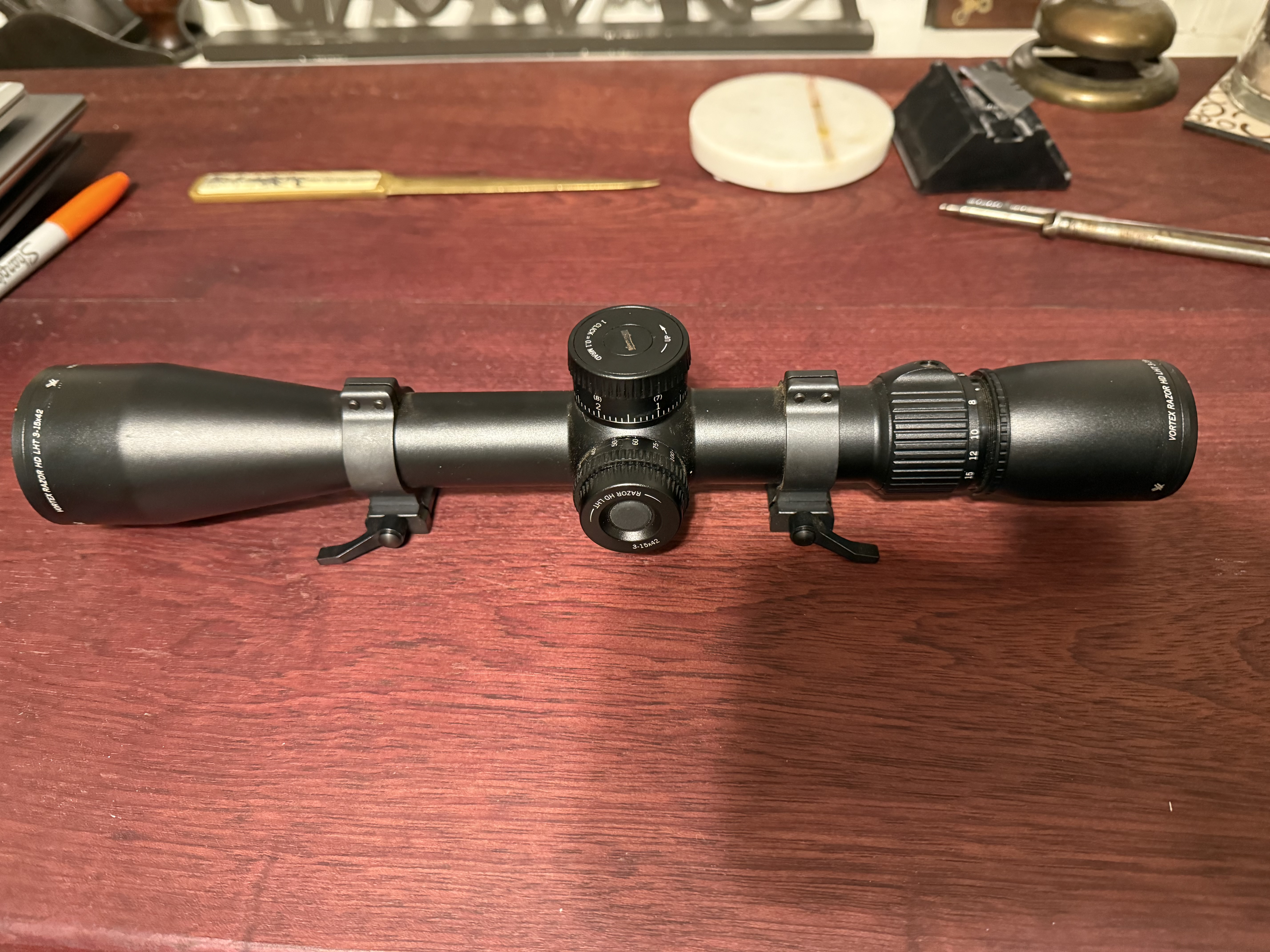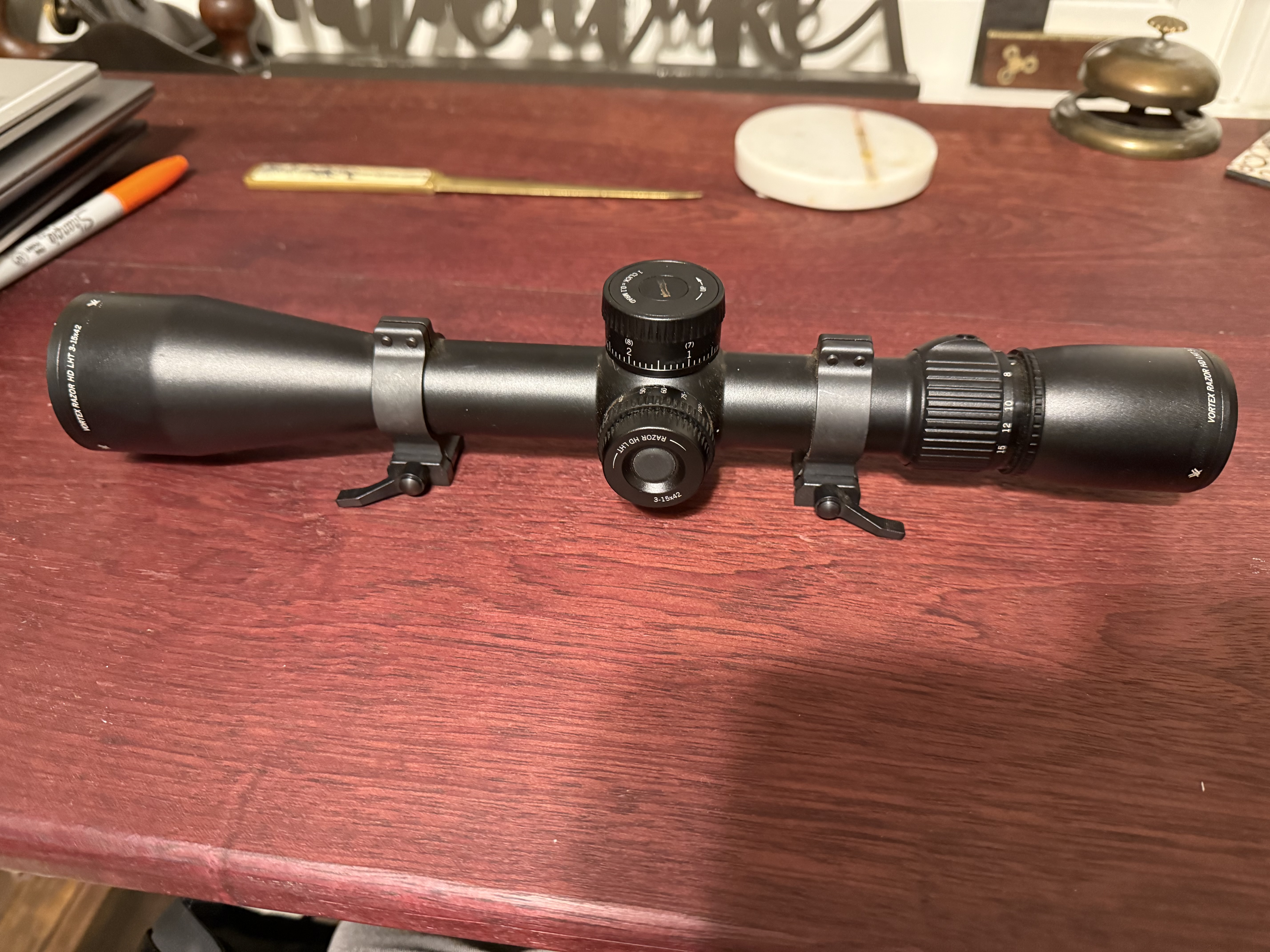 Vortex Razor LHT 3-15x42 MRAD. Comes with original lens covers and I believe I still have the box and a sunshade. Used one hunting trip, but I am selling it to fund new bino’s. Asking $775 including shipping. Add 3% for PayPal business.