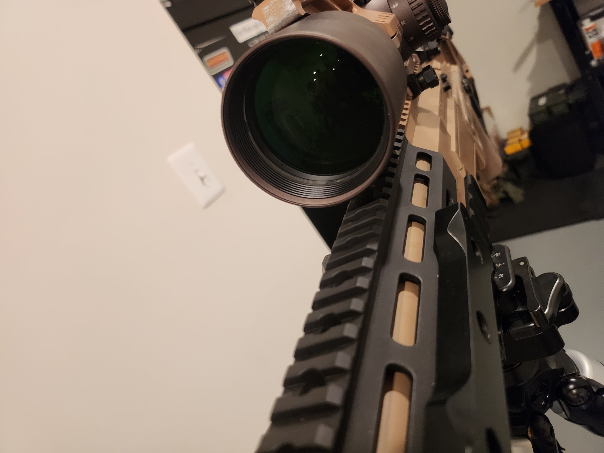 For sale is a used, but great condition Vortex Razor HD Gen II 4.5-27x56 FFP with EBR-2c (MRAD) reticle, Geissele super precision mount, and Reptilia diving board. I used a dremel tool to shave off the bottom angle of the diving board to make it fit this scope profile. Comes with Vortex defender scope caps, sun shade, scope turret tool, and two extra IDTS scope tapes.