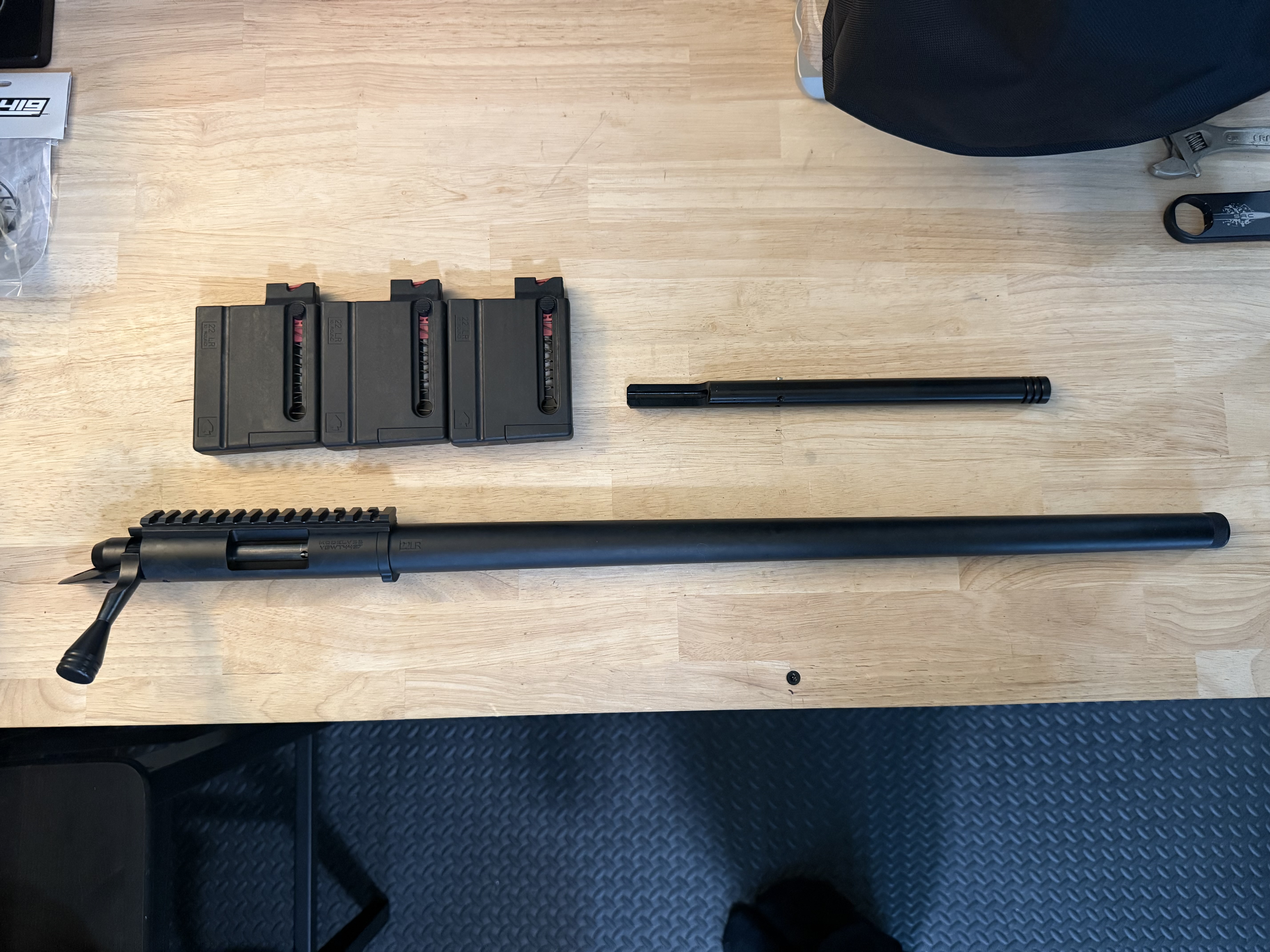 Vudoo 360 RH factory barreled action. 22” Bartlein MTU profile threaded 1/2-28. 30moa rail. About 18 months old. Round count is 1215. Comes with 3 factory 10 rd mags and a Botetech guide rod.